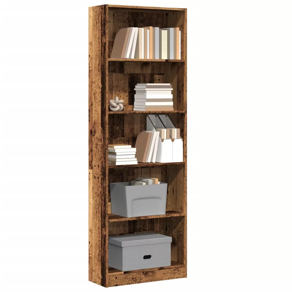 antik fa színű szerelt fa könyvespolc 60 x 24 x 176 cm