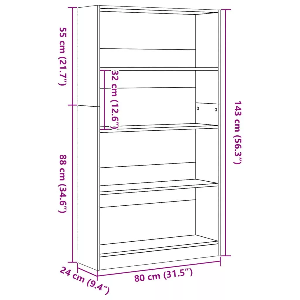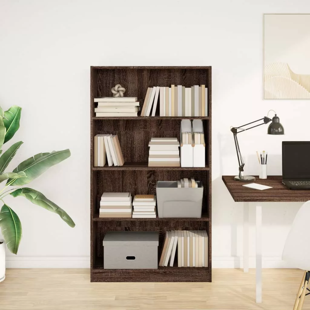 barna tölgy színű szerelt fa könyvszekrény 80 x 24 x 143 cm