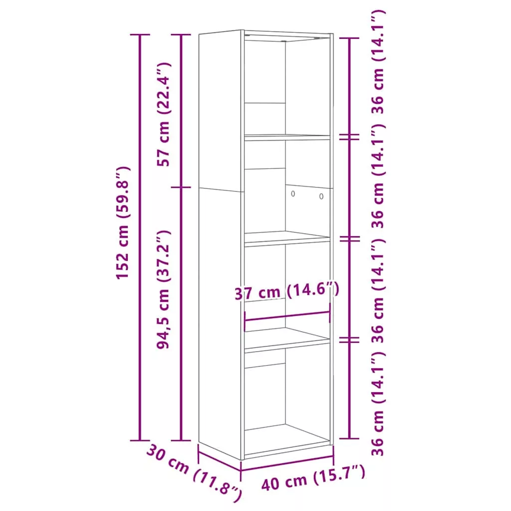 sonoma tölgy színű szerelt fa könyvespolc 40 x 30 x 152 cm