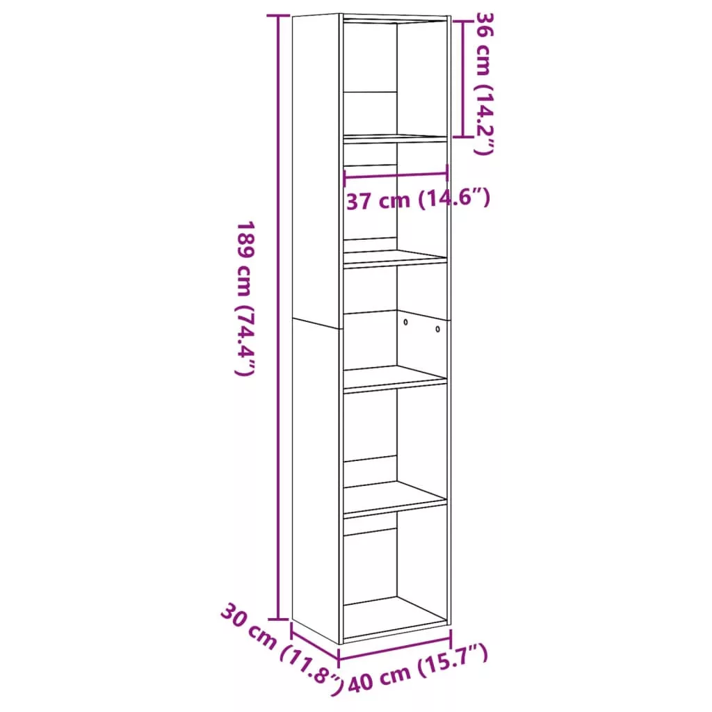 kézműves tölgy színű szerelt fa könyvespolc 40 x 30 x 189 cm