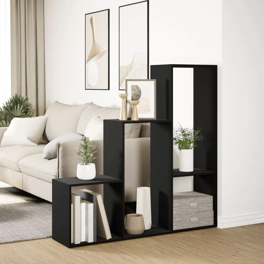 3 szintes fekete fa térelválasztó könyvespolc 123 x 29 x 123 cm