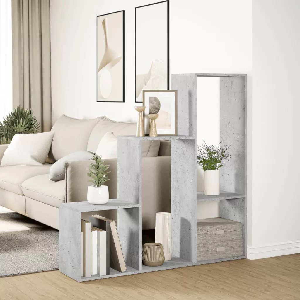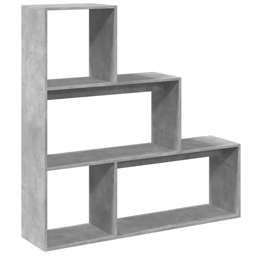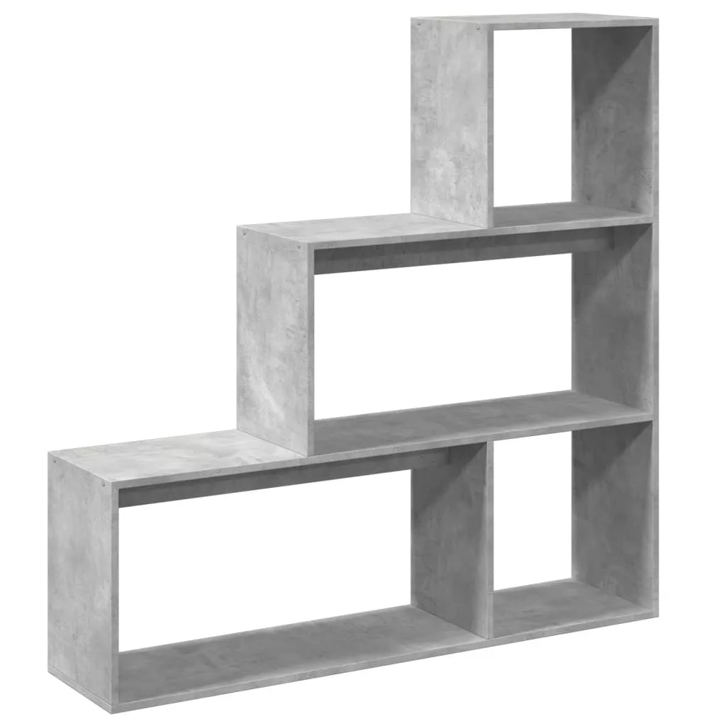 3 szintes betonszürke fa elválasztó könyvespolc 123x29x123 cm