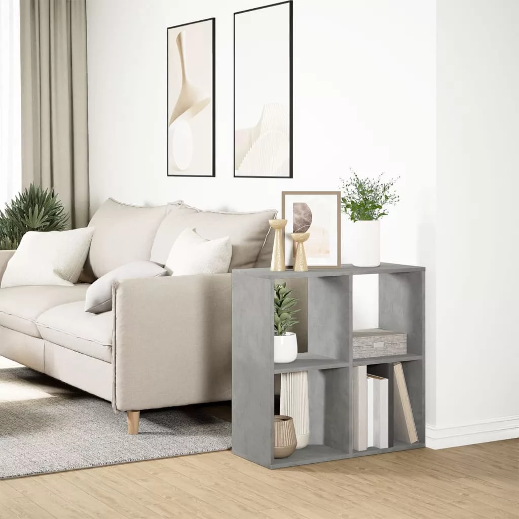 betonszürke szerelt fa elválasztó könyvespolc 69,5x29x69,5 cm