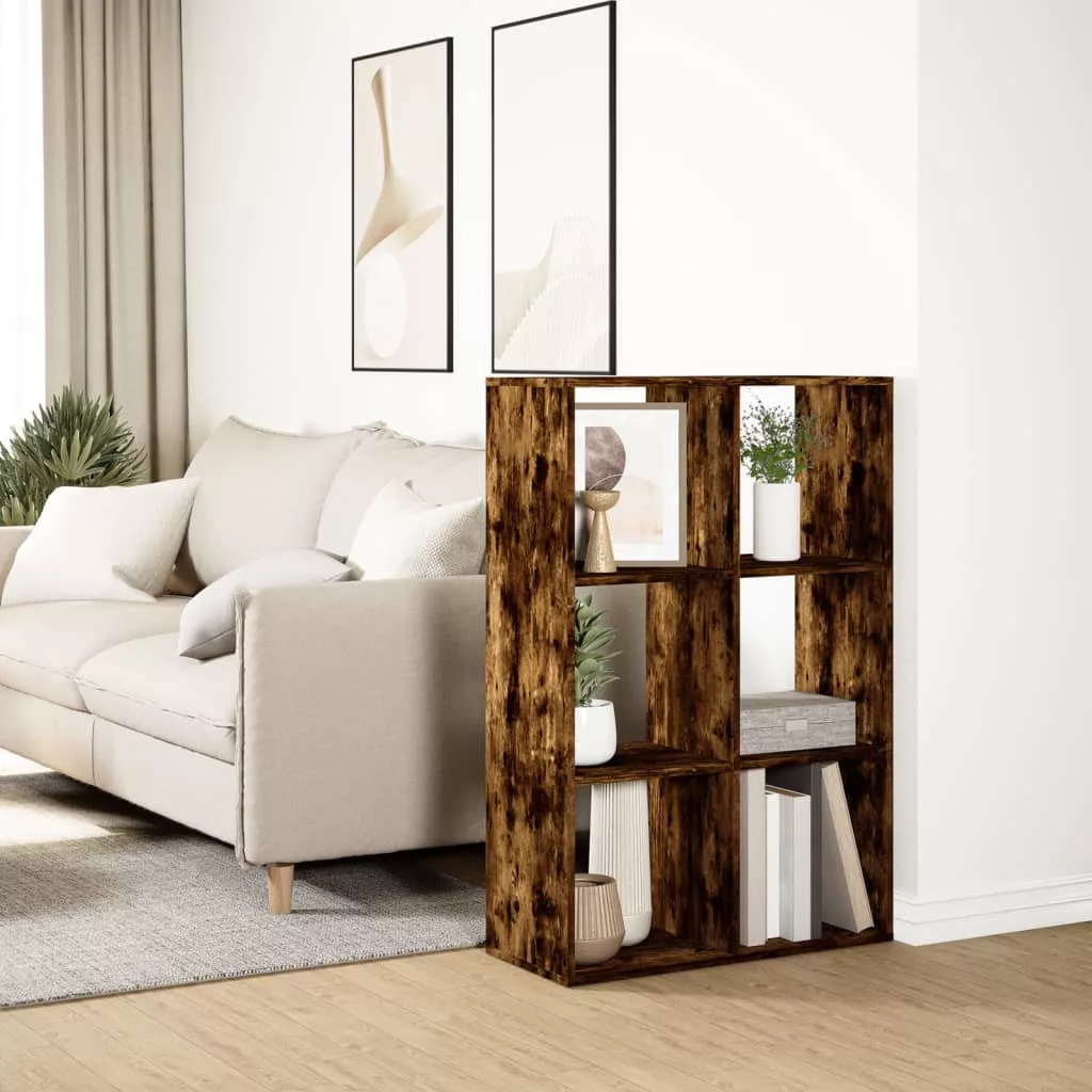 füstös tölgy szerelt fa elválasztó könyvespolc 69,5x29x103,5 cm