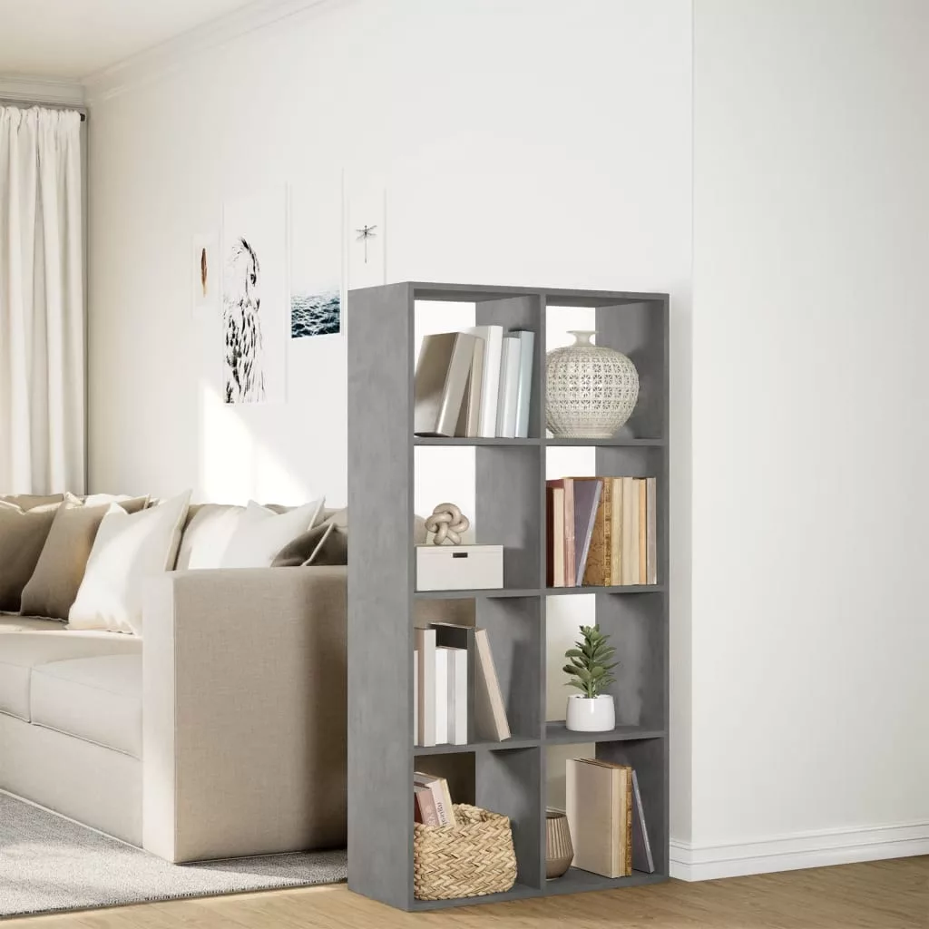 betonszürke szerelt fa elválasztó könyvespolc 69,5x29x137,5 cm