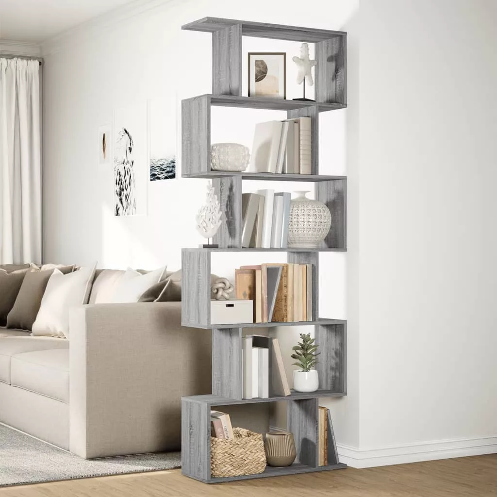 6 szintes szürke sonoma fa elválasztó könyvespolc 70x24x193 cm