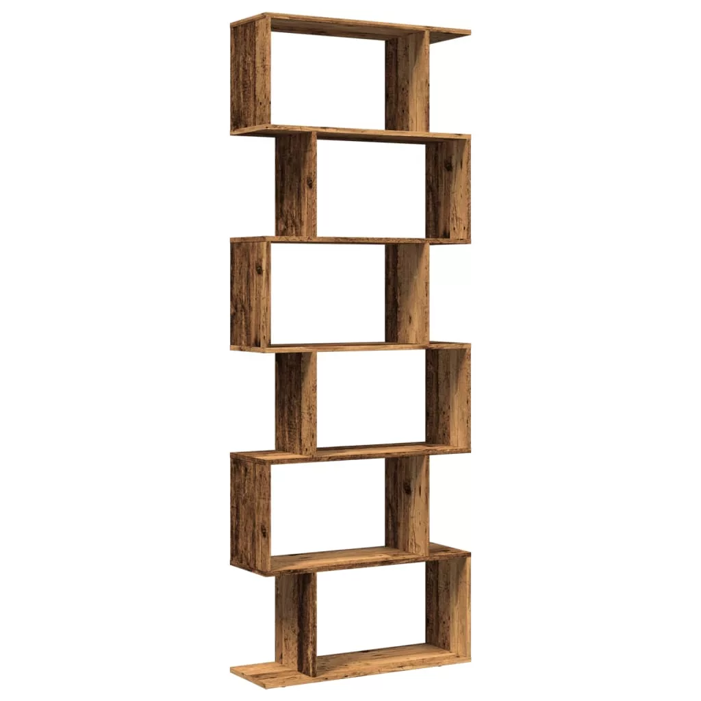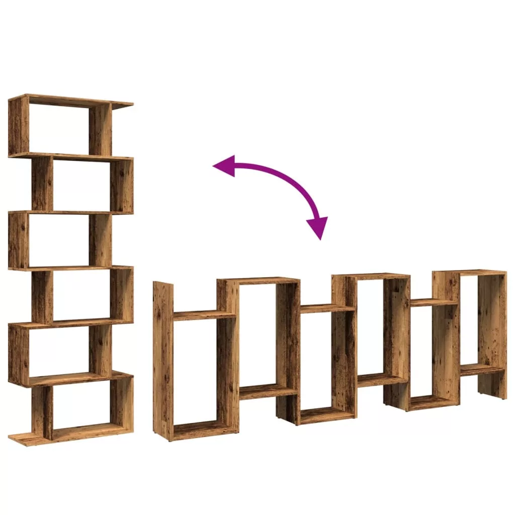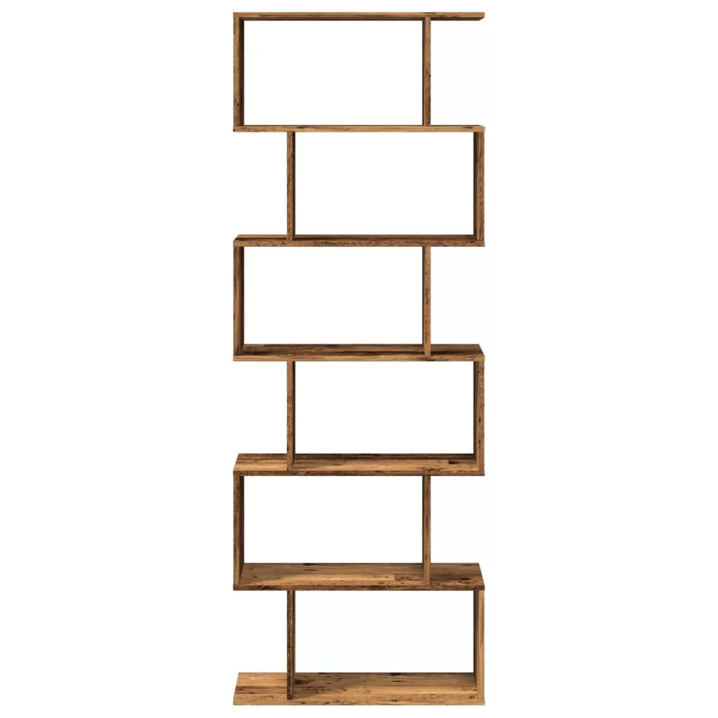 6 szintes antik fa színű fa elválasztó könyvespolc 70x24x193 cm