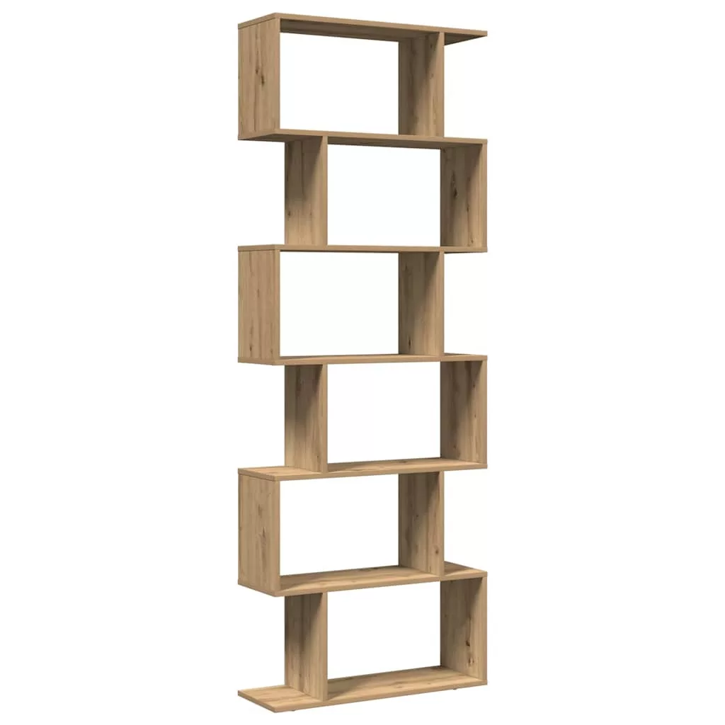 6 szintes kézműves tölgy fa elválasztó könyvespolc 70x24x193 cm