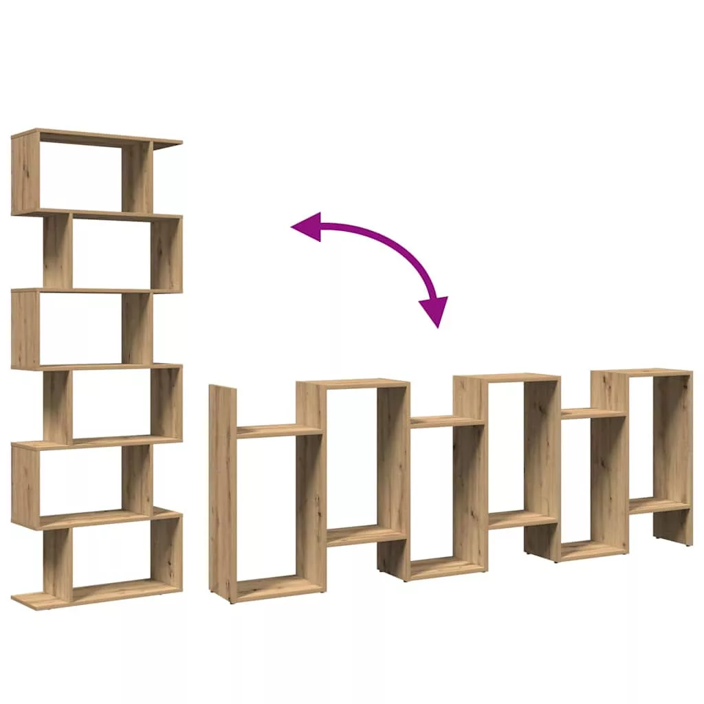 A geometrikus kialakítású, tárolólehetőséggel rendelkező térelválasztó könyvespolc tökéletes a helyiség stílusos rendszerezéséhez! Stabil és tartós anyag: A szerelt fa tartós és stabil anyag sima felülettel, amely ellenáll a nedvességnek, a vetemedésnek és a hasadásnak, így megbízható választás különféle célokhoz.Bőséges tárolóhely: A könyvespolc lépcsőzetes tárolórekeszekkel rendelkezik, amelyek bőséges helyet biztosítanak könyvei vagy dekorációi számára. A kisebb tárgyakat a szélső lapokon is elhelyezheti, így optimálisan használhatja ki a helyet, miközben a holmijait is rendezetten tarthatja.Rugalmas elhelyezési lehetőségek: A tárolópolc a szélessége vagy a magassága mentén is a földre helyezhető, így különböző lehetőséget kínál a helyiség elrendezésére.Széleskörű felhasználás: A könyvespolc térelválasztóként is használható, és bármilyen stílusú helyiségbe könnyen beilleszthető. Elhelyezheti a nappaliban dísztárgyai kiállításához, a dolgozószobában könyvek és dokumentumok tárolásához, a hálószobában a mindennapi tárgyak számára, vagy az alagsorban az apróságok tárolásához.Könnyen gondozható: Sima felületének köszönhetően a tároló- és könyvespolc nedves ruhával könnyen tisztítható, és kevesebb gondozást igényel. Figyelem:A felborulás elkerülése érdekében ezt a terméket a mellékelt fali rögzítőeszközzel kell használni. Jó tudni:A falon belüli csavarok és dugók nem alaptartozékok. Azt tanácsoljuk, hogy keressen és használjon kifejezetten az Ön falához megfelelő csavarokat és dugókat. Ha nem biztos benne, konzultálhat egy szakemberrel. Kérjük, olvassa el és kövesse az utasítások minden lépését.