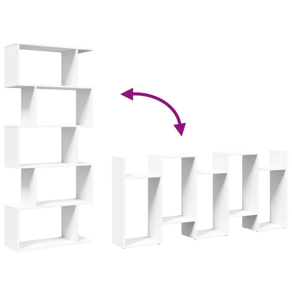 5 szintes fehér szerelt fa elválasztó könyvespolc 70x24x161 cm