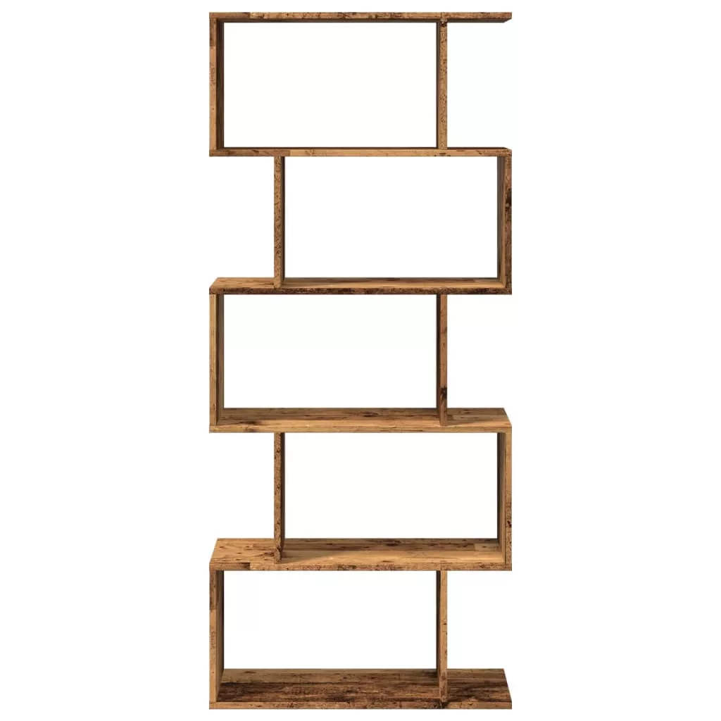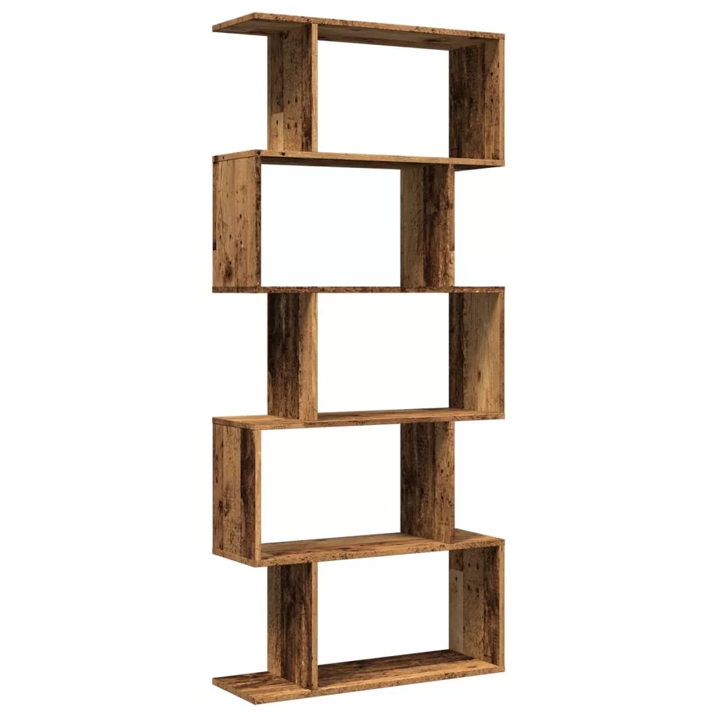5 szintes antik fa színű fa elválasztó könyvespolc 70x24x161 cm