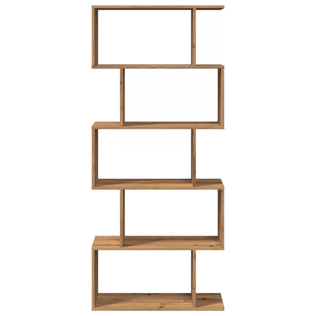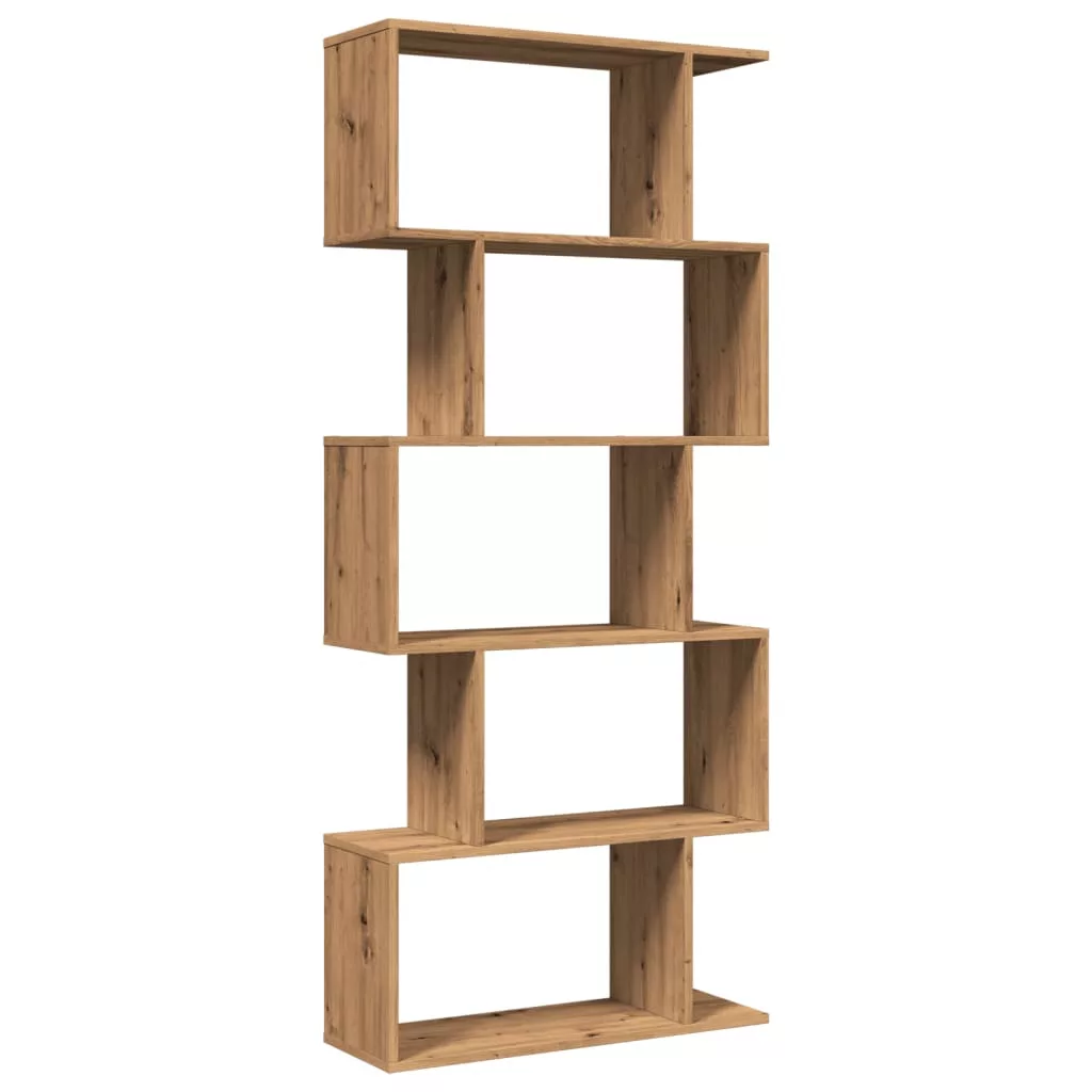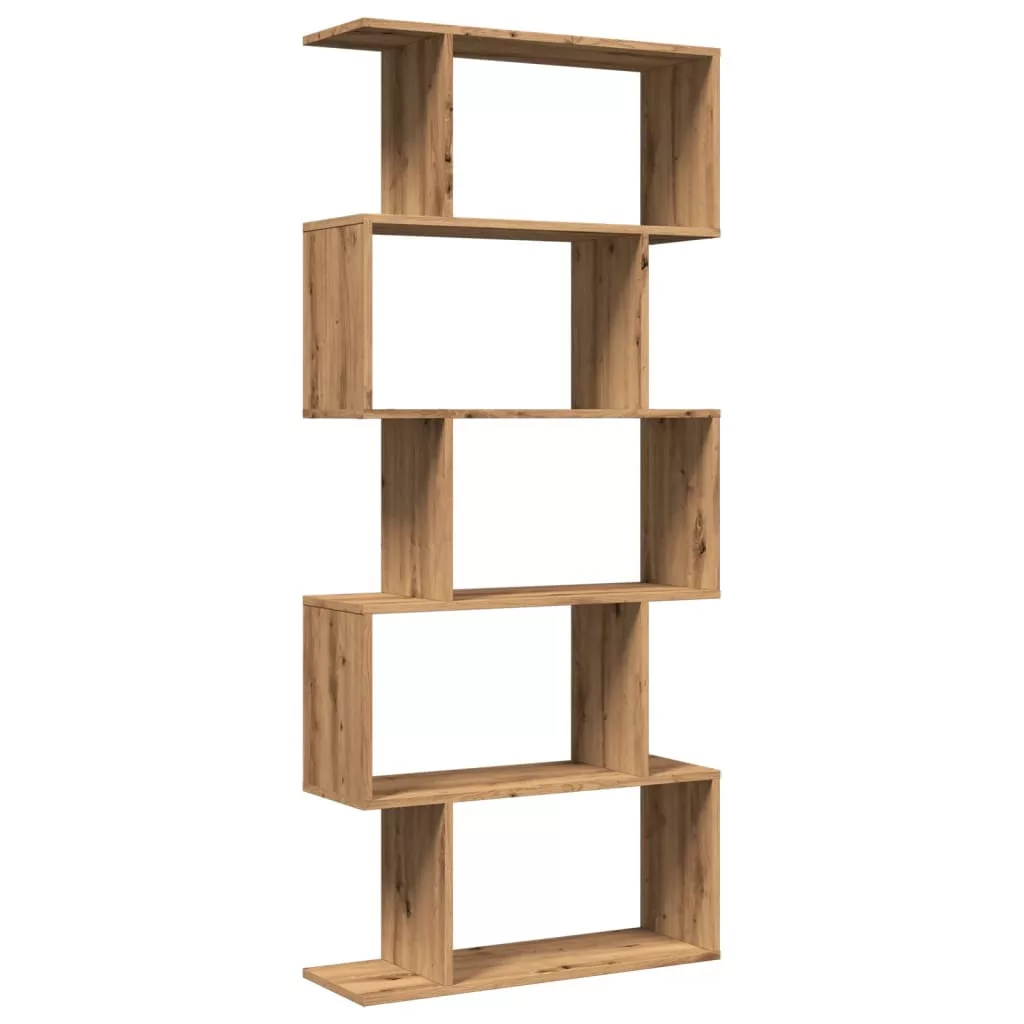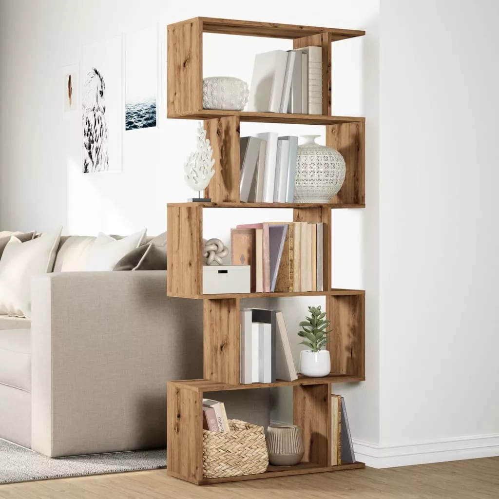 5 szintes kézműves tölgy fa elválasztó könyvespolc 70x24x161 cm