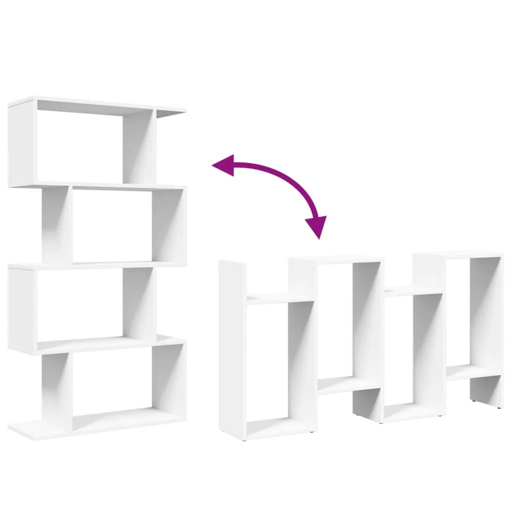 4 szintes fehér szerelt fa elválasztó könyvespolc 70x24x129 cm