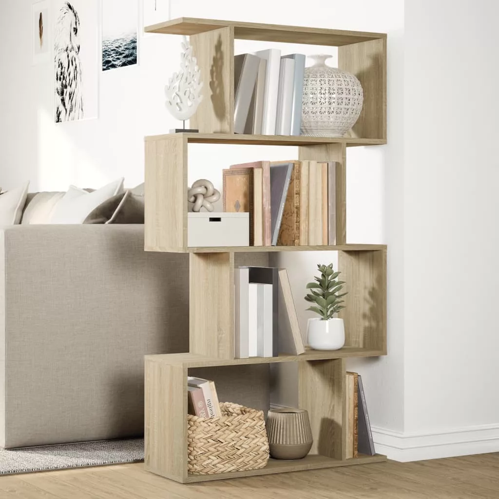 4 szintes sonoma tölgy fa elválasztó könyvespolc 70x24x129 cm