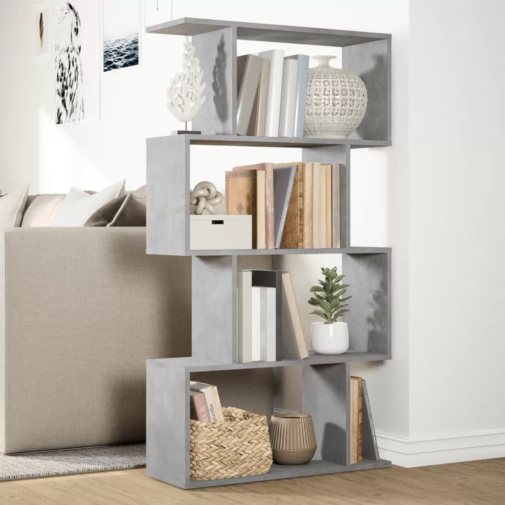 4 szintes betonszürke fa térelválasztó könyvespolc 70x24x129 cm