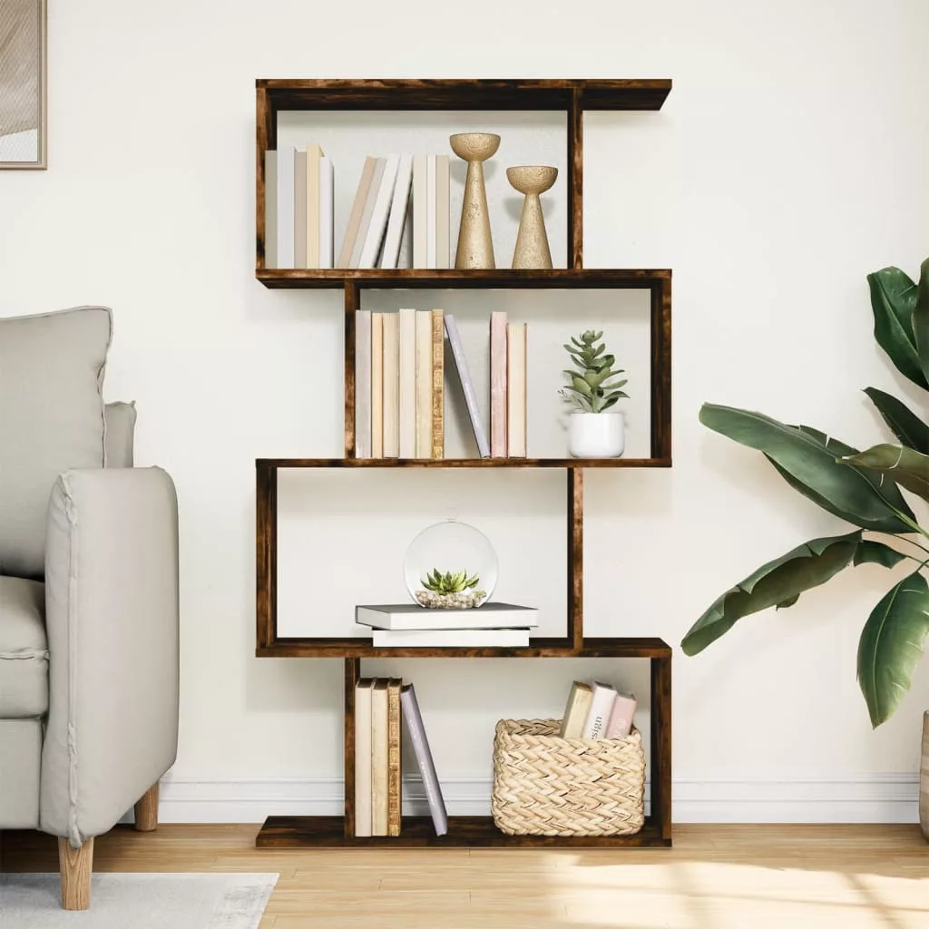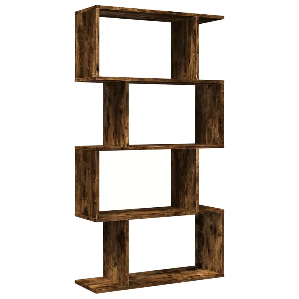 4 szintes füstös tölgy fa elválasztó könyvespolc 70x24x129 cm