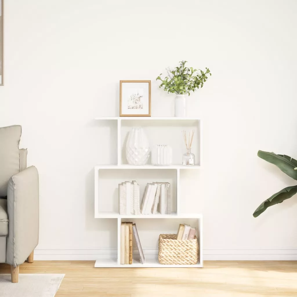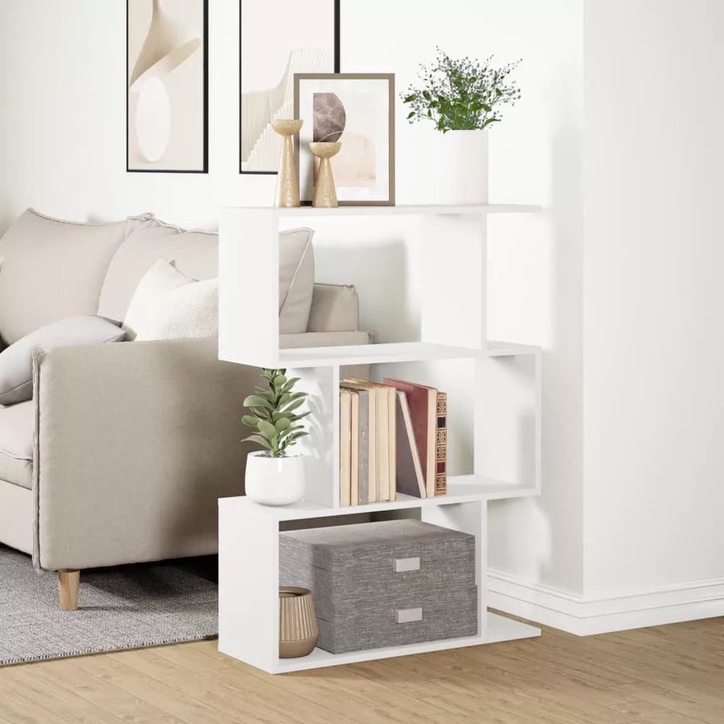 3 szintes fehér szerelt fa elválasztó könyvespolc 70x24x97 cm