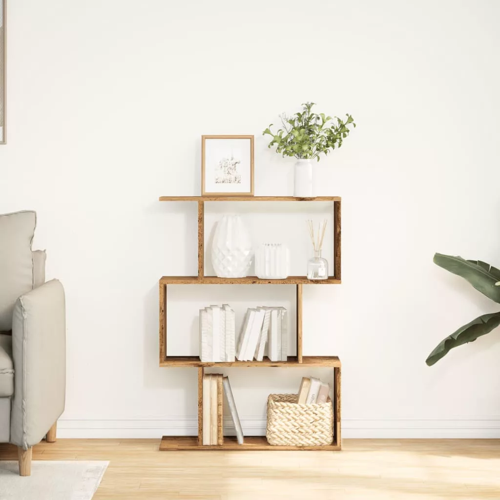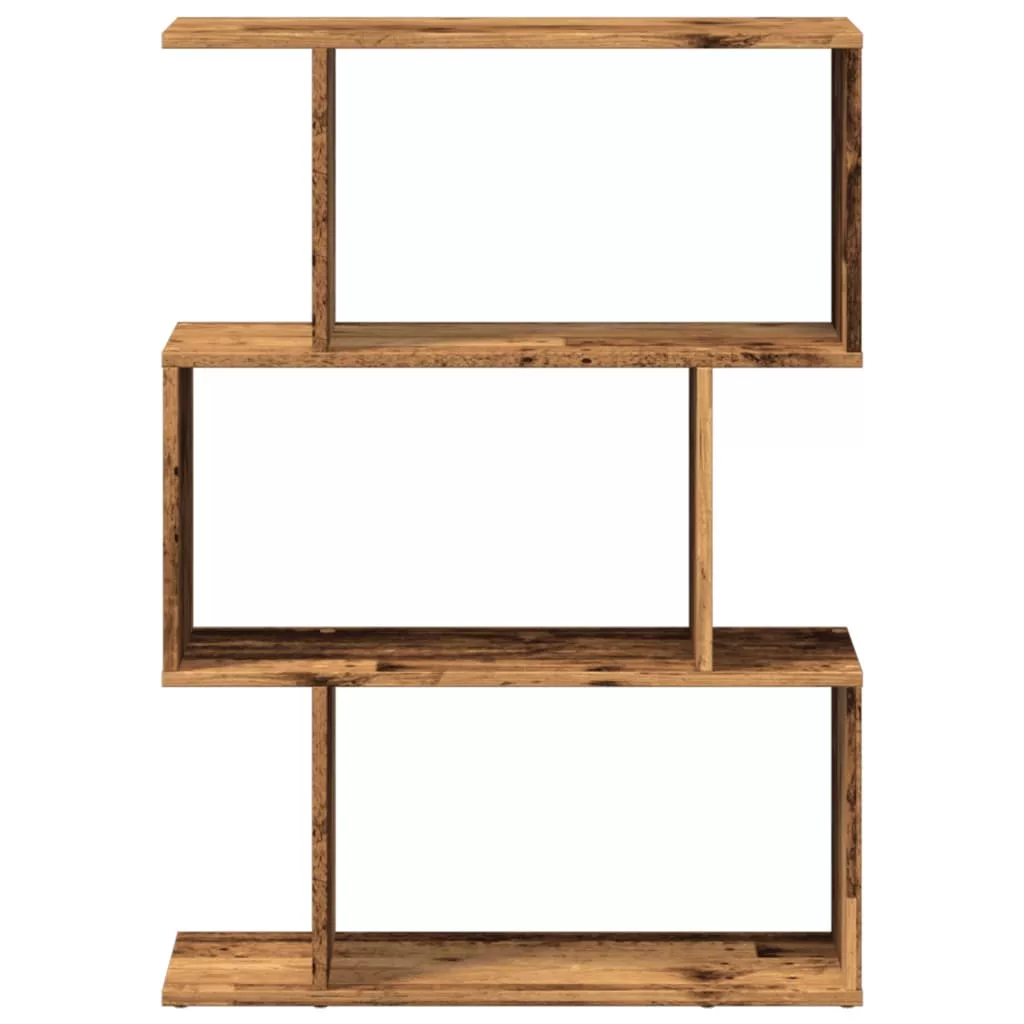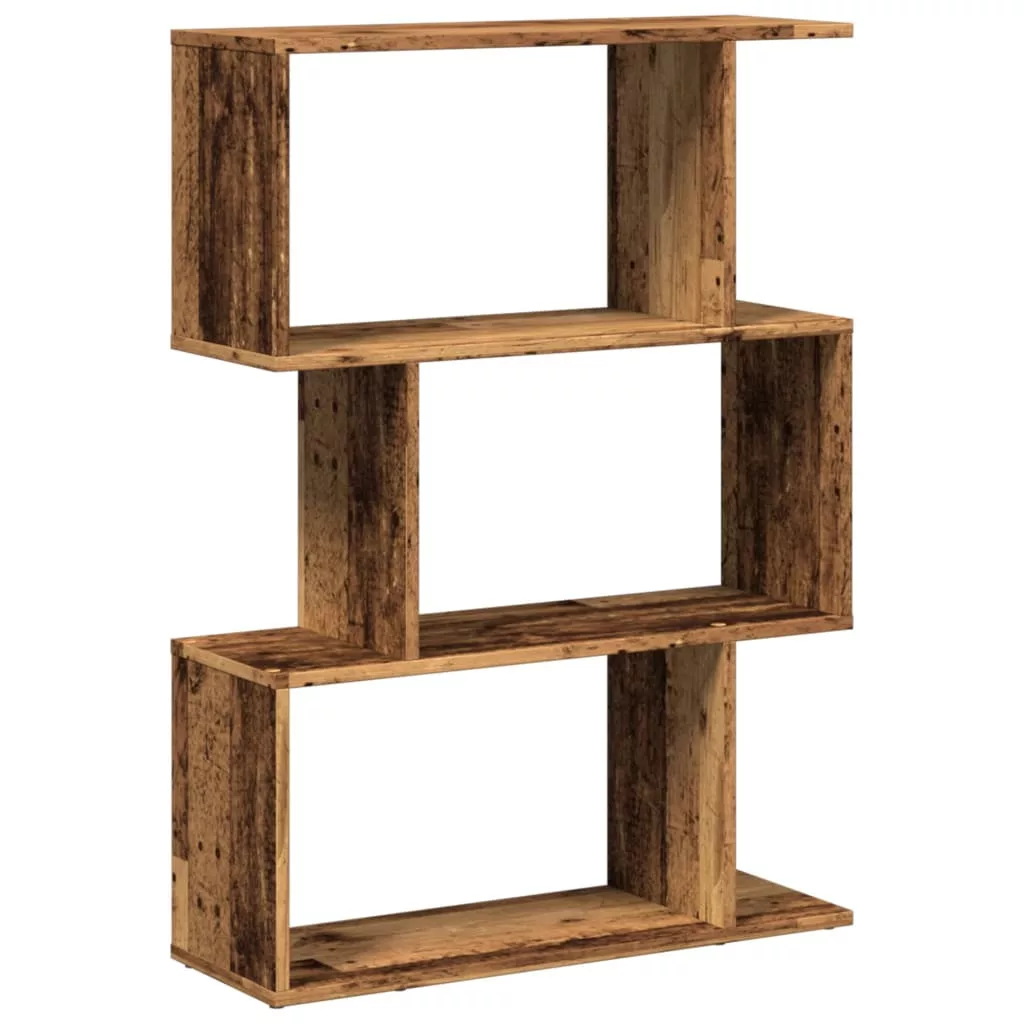 3 szintes antik fa színű fa elválasztó könyvespolc 70x24x97 cm