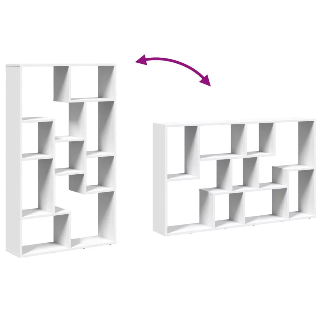 A geometrikus kialakítású, tárolólehetőséggel rendelkező modern könyvespolc tökéletes a helyiség stílusos rendszerezéséhez! Stabil és tartós anyag: A szerelt fa tartós és stabil anyag sima felülettel, amely ellenáll a nedvességnek, a vetemedésnek és a hasadásnak, így megbízható választás különféle célokhoz.Bőséges tárolóhely: Ez a különböző méretű rekeszekkel rendelkező könyvespolc rugalmas tárolási lehetőségeket kínál a különböző formájú és méretű tárgyak számára.Rugalmas elhelyezési lehetőségek: A polcrendszer a szélessége vagy a magassága mentén is a földre helyezhető, így sokoldalú lehetőséget kínál a helyiség elrendezésére.Sokoldalú felhasználás: A polc térelválasztóként is használható, és bármilyen stílusú helyiségbe könnyen beilleszthető. Elhelyezheti a nappaliban dísztárgyai kiállításához, a dolgozószobában könyvek és dokumentumok tárolásához, a hálószobában a mindennapi tárgyak számára, vagy az alagsorban az apróságok tárolásához.Könnyen gondozható: Sima felületének köszönhetően a könyvszekrény nedves ruhával könnyen tisztítható, és kevesebb gondozást igényel. Figyelem:A felborulás elkerülése érdekében ezt a terméket a mellékelt fali rögzítőeszközzel kell használni. Jó tudni:A falon belüli csavarok és dugók nem alaptartozékok. Azt tanácsoljuk, hogy keressen és használjon kifejezetten az Ön falához megfelelő csavarokat és dugókat. Ha nem biztos benne, konzultálhat egy szakemberrel. Kérjük, olvassa el és kövesse az utasítások minden lépését.