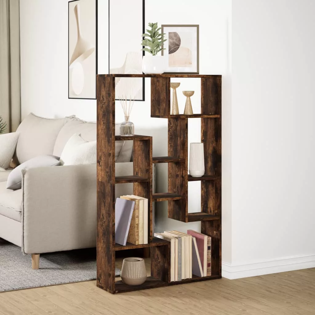 füstös tölgy színű szerelt fa könyvespolc 72 x 20 x 120 cm