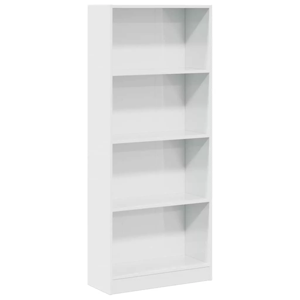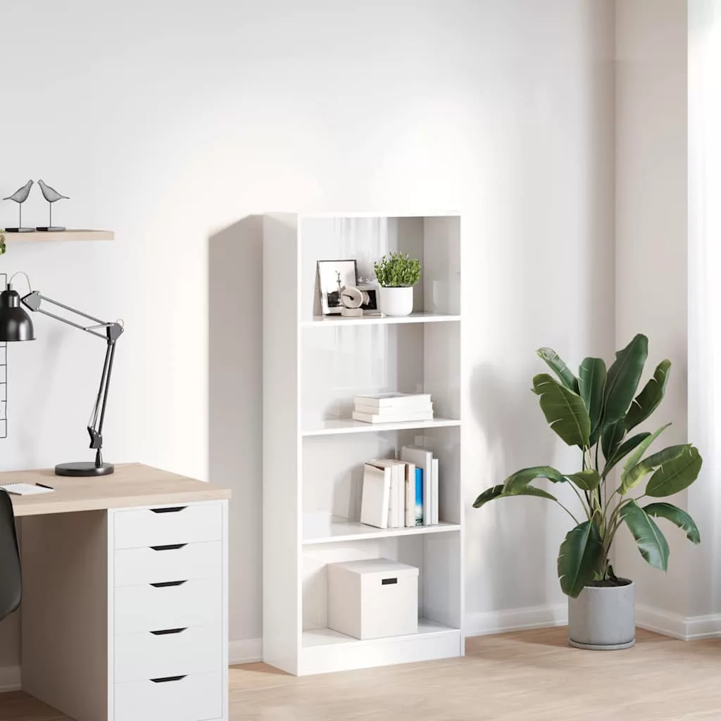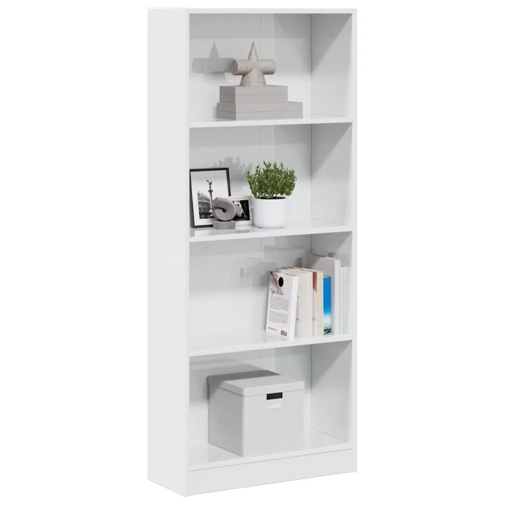 magasfényű fehér szerelt fa könyvespolc 60 x 24 x 143 cm
