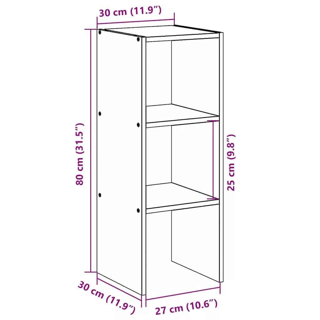 szürke sonoma szerelt fa könyvespolc halmozható 30 x 30 x 80 cm