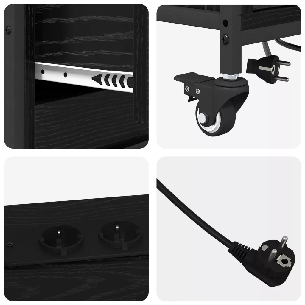 Ez az Irodai Tárolószekrény neked készült, ha fontos, hogy rendben tartsd a dolgaidat. Szépen ötvözi a funkciót és a stílust bármely otthoni irodában vagy munkahelyen. Az egyszerű téglalap alakja és letisztult vonalai a minimalizmus szellemében készült, míg a matt felület egy kis osztályt ad hozzá. A szekrény kiemelkedik anélkül, hogy eltúlzott lenne, tökéletes azoknak, akik értékelik a rendezett hatékonyságot. Tárolási Rendszer: Ez a szekrény egy sima tárolást biztosít polcokkal, klasszikus fiókokkal és rengeteg rekesszel az irodai cuccok tárolásához. A dizájnja maximálisan kihasználja a teret, segítve a felhasználókat, hogy rendezett és összpontosított maradhassanak, ami növeli a produktivitást. Tökéletes papírok és egyéb alapanyagok tárolására, szóval elengedhetetlen a hatékony irodai menedzsmenthez. Modern Esztétika: Minimalista bájával ez a darab egy elegáns modern dizájnt vonultat fel, letisztult vonalakkal és matt felülettel. A semleges színek lehetővé teszik, hogy könnyen illeszkedjen különböző dekorációs stílusokhoz, kombinálva a jó kinézetet a praktikummal. Tartósra készült, biztosítva a helyét, mint megbízható funkció az irodában. Funkcionális Elemei: A beépített töltőállomás egy szuper funkció, előre kivágott lyukakkal a hálózati csatlakozóknak, hogy a kütyüid mindig fel legyenek töltve. Ez a funkció kiemeli a technológiai központ szerepét, beleillik a modern munkahelyekbe. Praktikus Mobilitás: Kerekeknek köszönhetően könnyen mozgatható, így ha kell, áthelyezheted. Ez a mobilitás szuper a különböző irodai elrendezésekhez, támogathatja a rugalmas, együttműködő munkakörnyezetet. Karbantartás és Gondozás: Ahhoz, hogy jól nézzen ki, csak egy száraz ruhával kell letörölnöd, hogy eltávolítsd a port. Ügyelj arra, hogy ne terheld túl a polcokat, hogy erős maradjon és jól működjön idővel. FIGYELEM: A tűz- vagy áramütésveszély csökkentése érdekében olvassa el az összes utasítást a többszörös aljzat felszerelése vagy használata előtt. FIGYELMEZTETÉS: Ne használja az aljzatot 16 A feletti készülékek csatlakoztatására. Az áram veszélyes. A sérülés, a nem megfelelő felszerelés, használat vagy módosítás (egyes alkatrészek cseréje) a készülék károsodásához vezethet, ami áramütést és veszélyt jelent a felhasználó számára. Ha a külső rugalmas kábel vagy vezeték megsérül, azt kizárólag a gyártó, annak szervizképviselője vagy hasonlóan képzett személy cserélheti ki a veszély elkerülése érdekében. Az USB-csatlakozó csak IT-eszközökhöz használható. Ne csatlakoztassa egymás után. Használat közben ne takarja le. Csak száraz környezetben használja. A megnövekedett hőterhelés miatt csak kinyújtott állapotban üzemeltesse. Telepítés és karbantartás közben kapcsolja ki az áramellátást.
