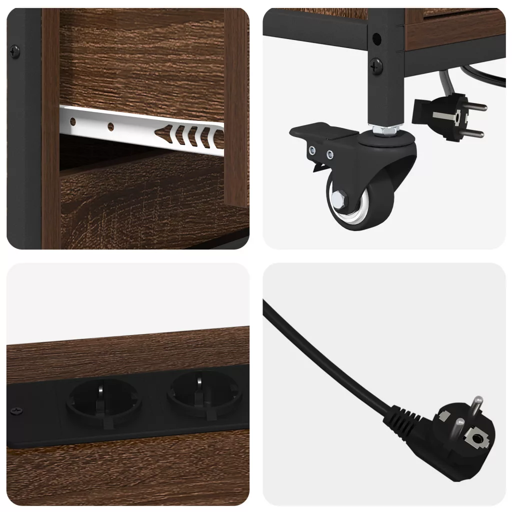 Ez az Irodai Tárolószekrény neked készült, ha fontos, hogy rendben tartsd a dolgaidat. Szépen ötvözi a funkciót és a stílust bármely otthoni irodában vagy munkahelyen. Az egyszerű téglalap alakja és letisztult vonalai a minimalizmus szellemében készült, míg a matt felület egy kis osztályt ad hozzá. A szekrény kiemelkedik anélkül, hogy eltúlzott lenne, tökéletes azoknak, akik értékelik a rendezett hatékonyságot. Tárolási Rendszer: Ez a szekrény egy sima tárolást biztosít polcokkal, klasszikus fiókokkal és rengeteg rekesszel az irodai cuccok tárolásához. A dizájnja maximálisan kihasználja a teret, segítve a felhasználókat, hogy rendezett és összpontosított maradhassanak, ami növeli a produktivitást. Tökéletes papírok és egyéb alapanyagok tárolására, szóval elengedhetetlen a hatékony irodai menedzsmenthez. Modern Esztétika: Minimalista bájával ez a darab egy elegáns modern dizájnt vonultat fel, letisztult vonalakkal és matt felülettel. A semleges színek lehetővé teszik, hogy könnyen illeszkedjen különböző dekorációs stílusokhoz, kombinálva a jó kinézetet a praktikummal. Tartósra készült, biztosítva a helyét, mint megbízható funkció az irodában. Funkcionális Elemei: A beépített töltőállomás egy szuper funkció, előre kivágott lyukakkal a hálózati csatlakozóknak, hogy a kütyüid mindig fel legyenek töltve. Ez a funkció kiemeli a technológiai központ szerepét, beleillik a modern munkahelyekbe. Praktikus Mobilitás: Kerekeknek köszönhetően könnyen mozgatható, így ha kell, áthelyezheted. Ez a mobilitás szuper a különböző irodai elrendezésekhez, támogathatja a rugalmas, együttműködő munkakörnyezetet. Karbantartás és Gondozás: Ahhoz, hogy jól nézzen ki, csak egy száraz ruhával kell letörölnöd, hogy eltávolítsd a port. Ügyelj arra, hogy ne terheld túl a polcokat, hogy erős maradjon és jól működjön idővel. FIGYELEM: A tűz- vagy áramütésveszély csökkentése érdekében olvassa el az összes utasítást a többszörös aljzat felszerelése vagy használata előtt. FIGYELMEZTETÉS: Ne használja az aljzatot 16 A feletti készülékek csatlakoztatására. Az áram veszélyes. A sérülés, a nem megfelelő felszerelés, használat vagy módosítás (egyes alkatrészek cseréje) a készülék károsodásához vezethet, ami áramütést és veszélyt jelent a felhasználó számára. Ha a külső rugalmas kábel vagy vezeték megsérül, azt kizárólag a gyártó, annak szervizképviselője vagy hasonlóan képzett személy cserélheti ki a veszély elkerülése érdekében. Az USB-csatlakozó csak IT-eszközökhöz használható. Ne csatlakoztassa egymás után. Használat közben ne takarja le. Csak száraz környezetben használja. A megnövekedett hőterhelés miatt csak kinyújtott állapotban üzemeltesse. Telepítés és karbantartás közben kapcsolja ki az áramellátást.