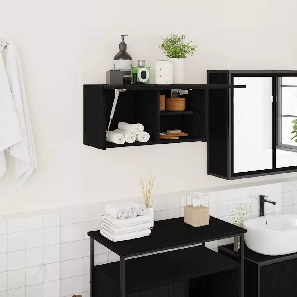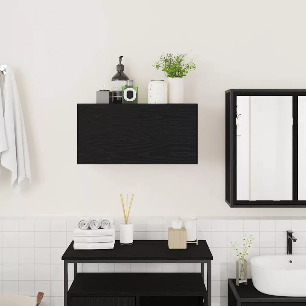 fekete szerelt fa fali fürdőszobaszekrény 60x25x30 cm