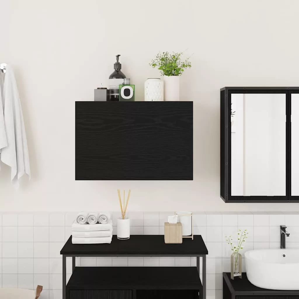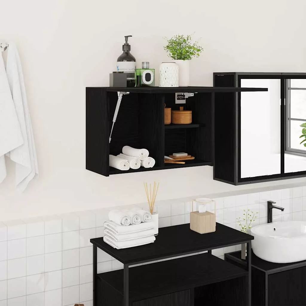 fekete szerelt fa fali fürdőszobaszekrény 60x25x40 cm