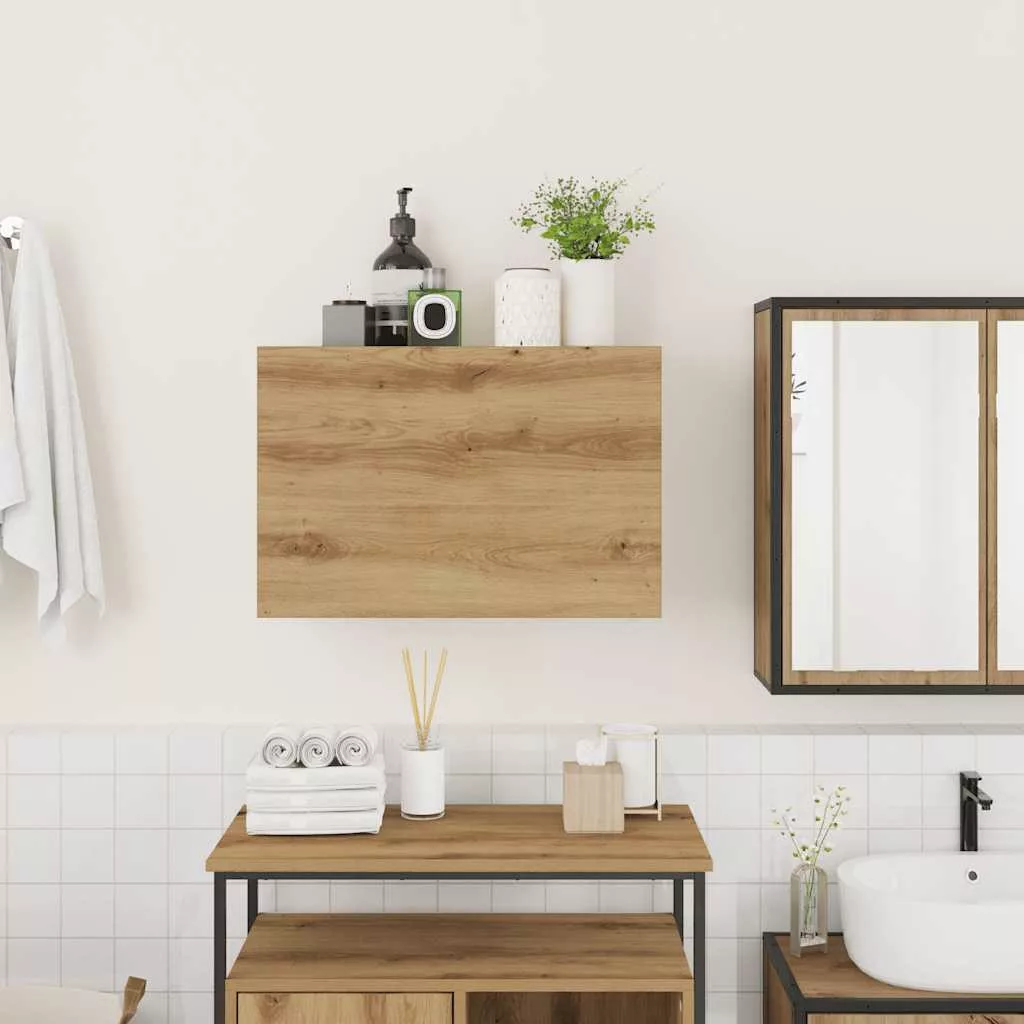kézműves tölgy szerelt fa fali fürdőszobaszekrény 60x25x40 cm