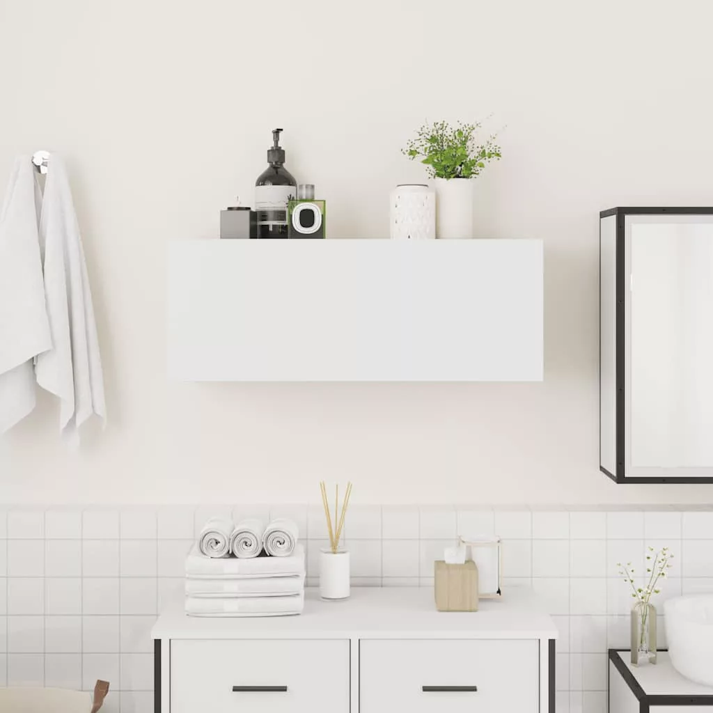 fehér szerelt fa fali fürdőszobaszekrény 80x25x30 cm