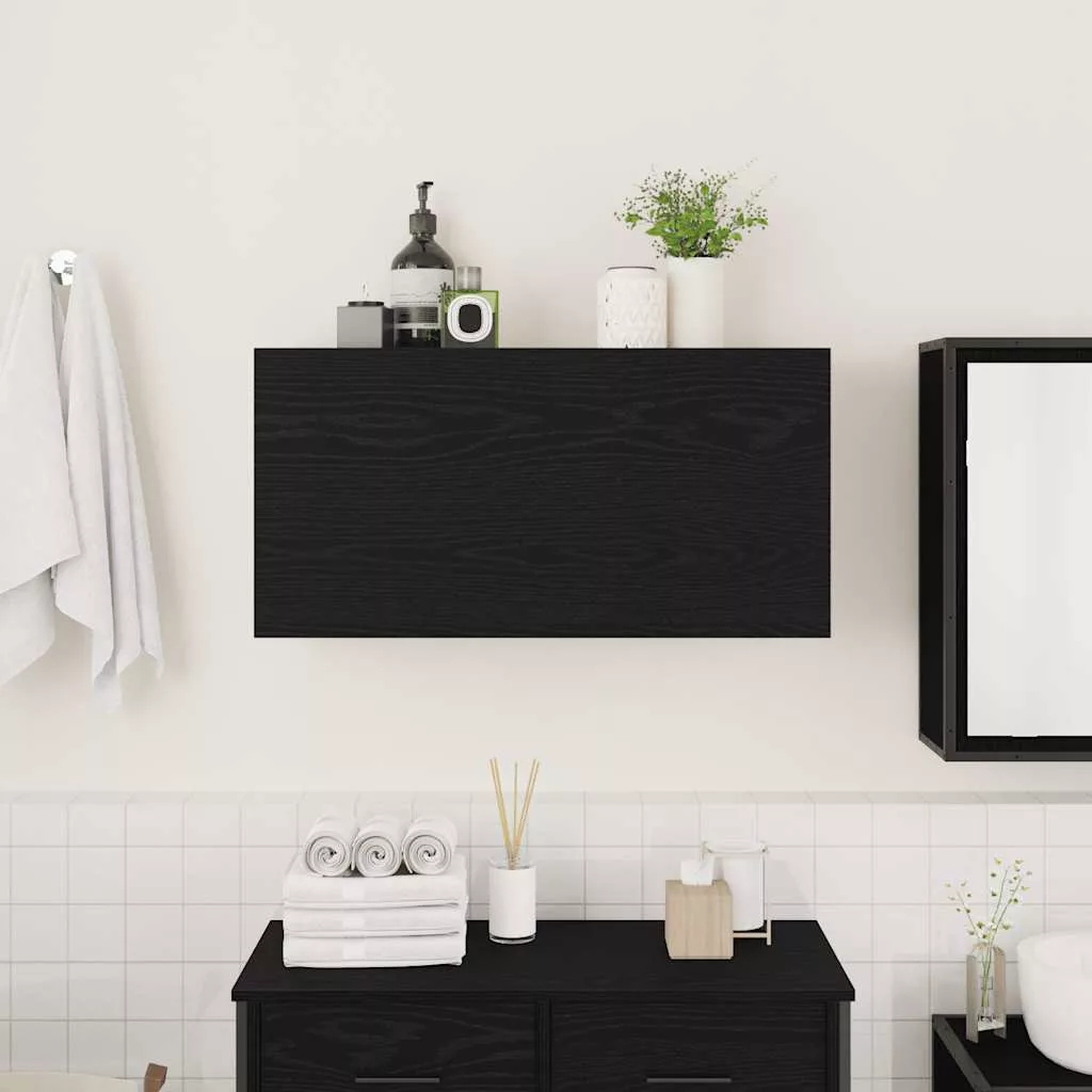 fekete szerelt fa fali fürdőszobaszekrény 80x25x40 cm