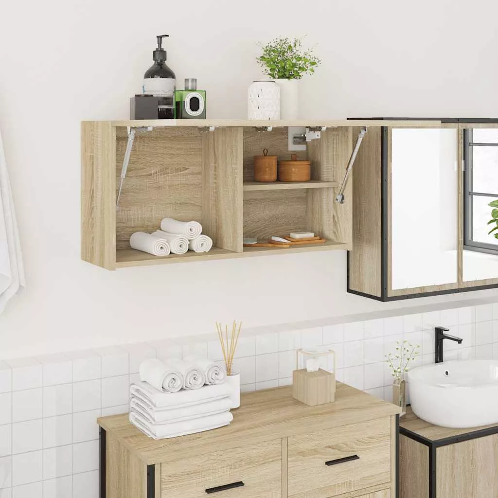 sonoma tölgyszínű szerelt fa fali fürdőszobaszekrény 80x25x40cm