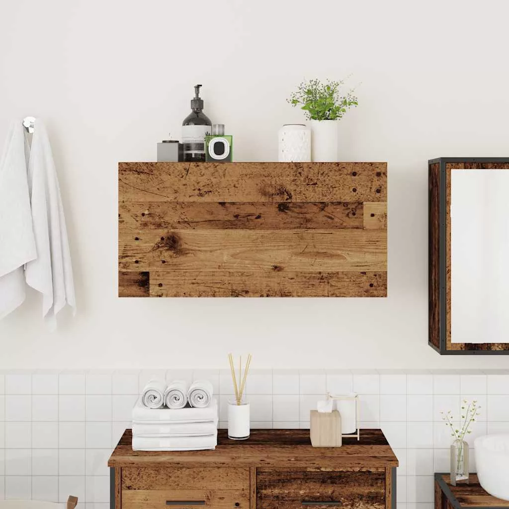 antik fa színű szerelt fa fali fürdőszobaszekrény 80x25x40 cm
