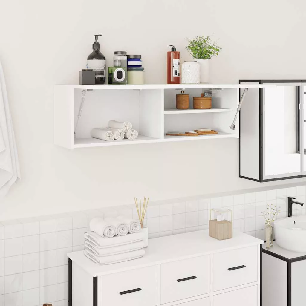 fehér szerelt fa fali fürdőszobaszekrény 100x25x30 cm