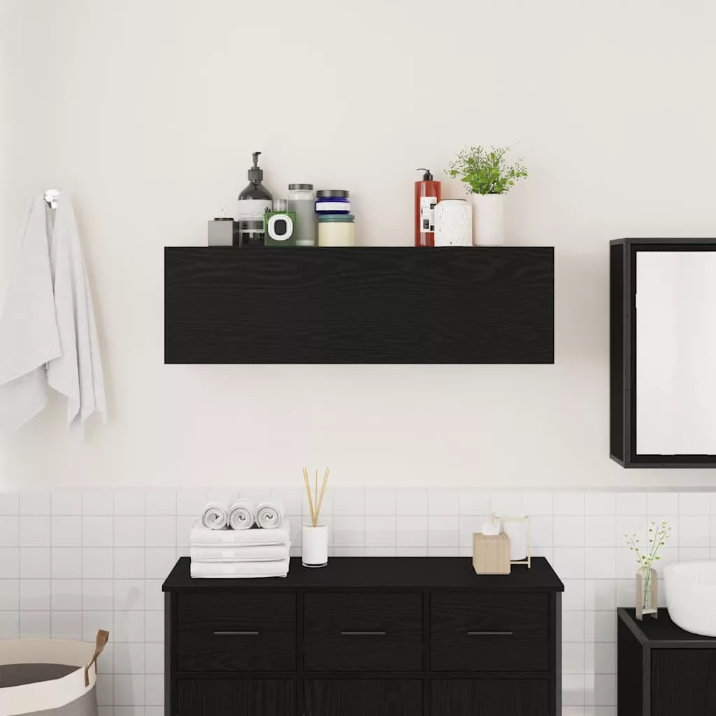 fekete szerelt fa fali fürdőszobaszekrény 100x25x30 cm