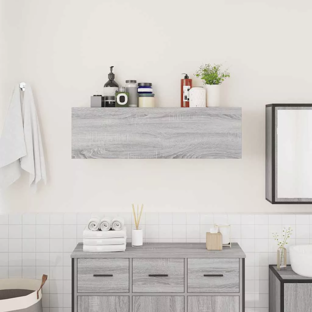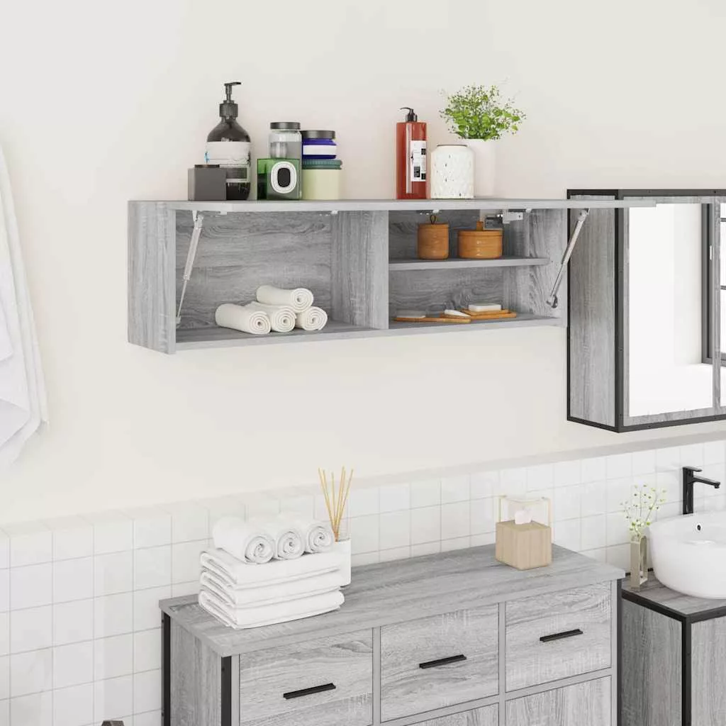 szürke sonoma szerelt fa fali fürdőszobaszekrény 100x25x30 cm