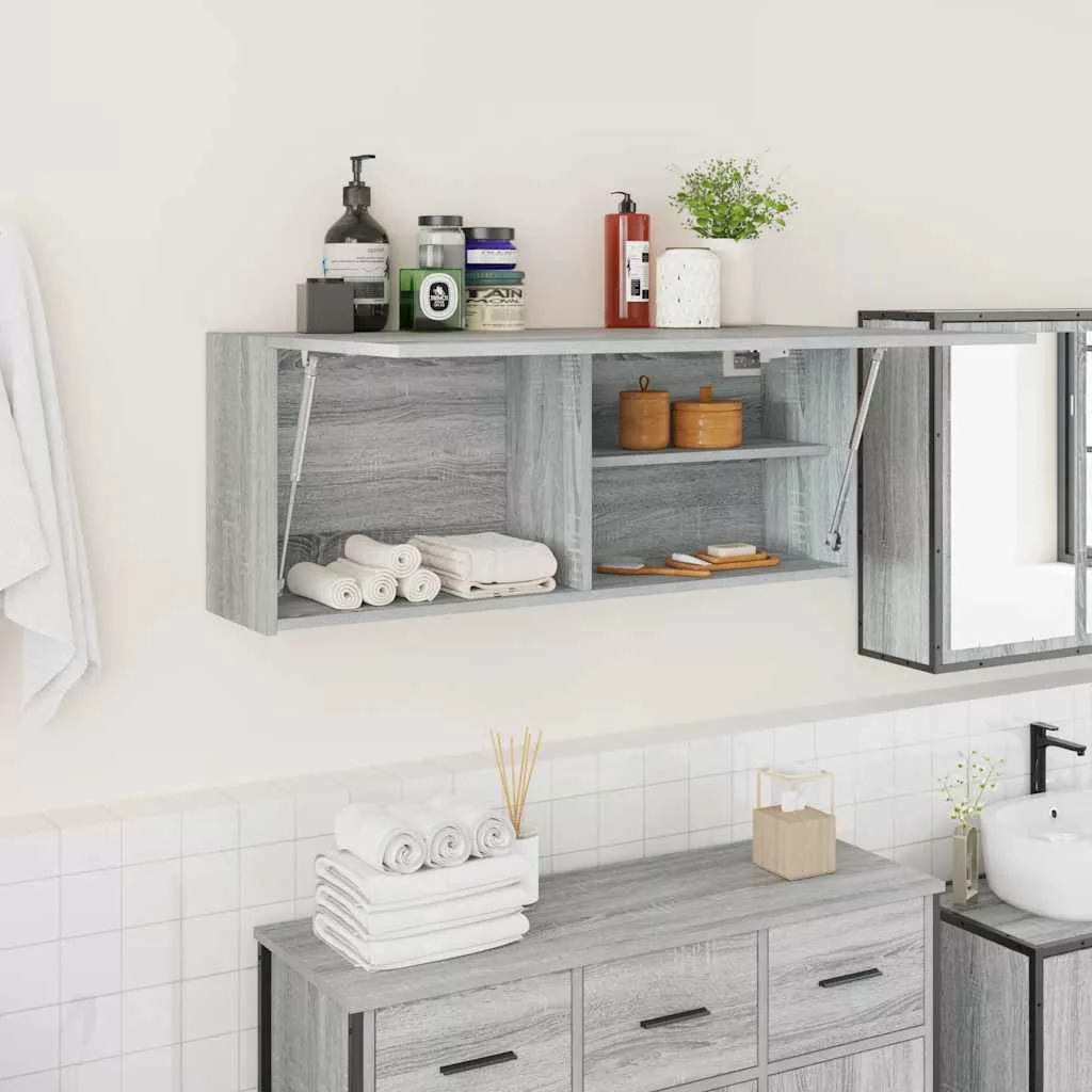 szürke sonoma szerelt fa fali fürdőszobaszekrény 100x25x40 cm