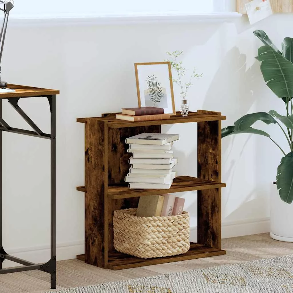 3 szintes füstös tölgy színű szerelt fa könyvespolc 60x30x60 cm