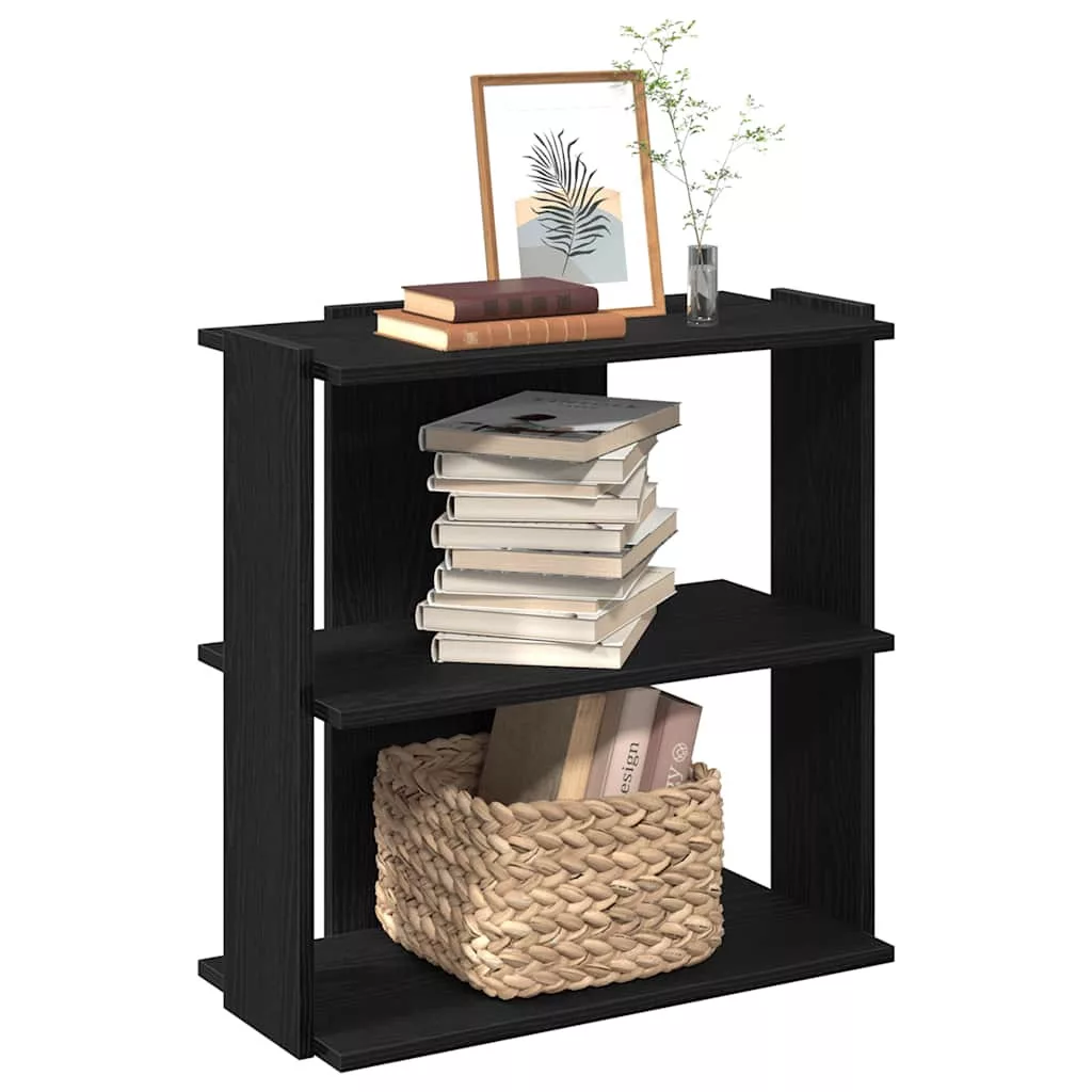 3 szintes fekete szerelt fa könyvespolc 60x30x80 cm