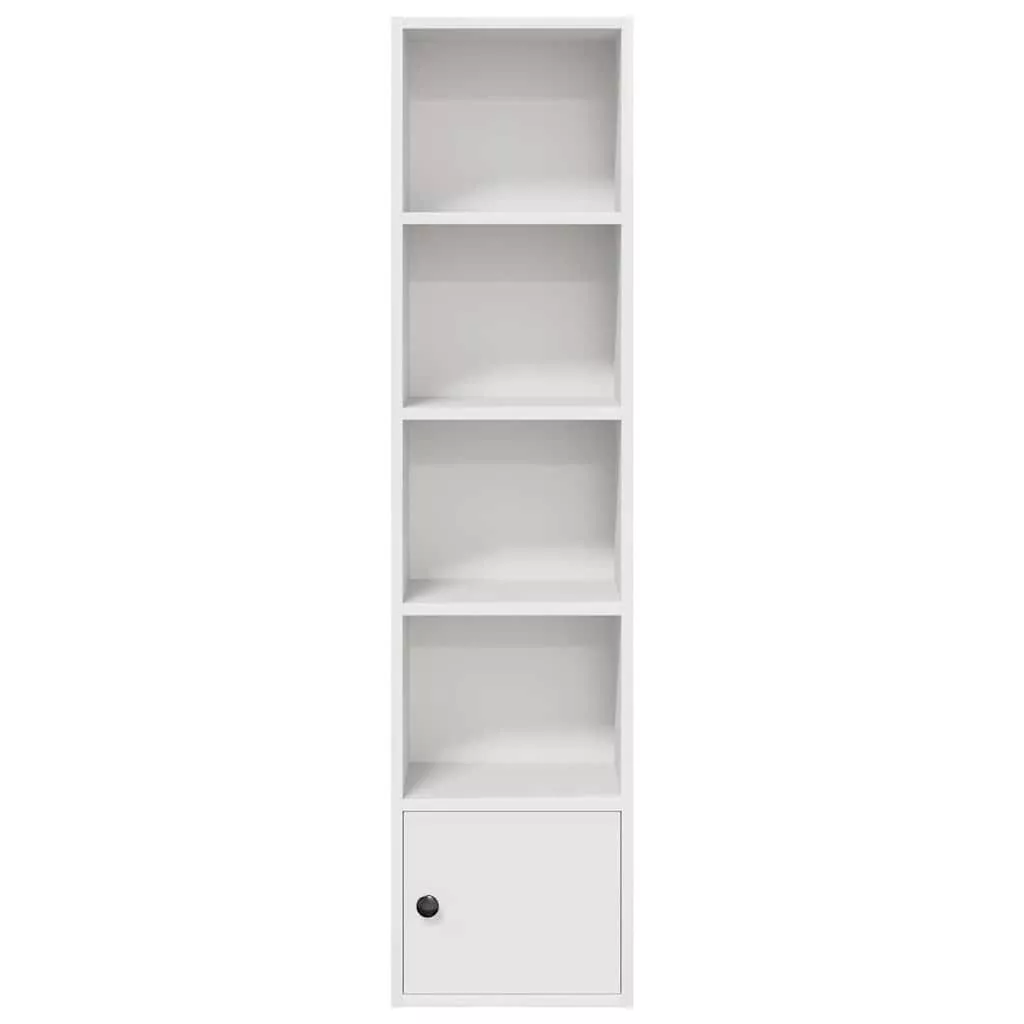 Ez a könyvespolc tökéletes megoldást kínál könyvei rendszerezésére, miközben stílusos és funkcionális kiegészítője otthonának. Stabil és tartós anyag: A szerelt fa tartós és stabil anyag sima felülettel, amely ellenáll a nedvességnek, a vetemedésnek és a hasadásnak, így megbízható választás különféle célokhoz.Bőséges tárolóhely: Ez a tárolószekrény több polccal és ajtóval ellátott szekrénnyel rendelkezik, így bőséges helyet biztosít a könyvek, magazinok és dokumentumok gyűjteményének rendben tartásához.Rugalmas ajtószerelés: A szekrény ajtaja balra vagy jobbra helyezhető, az Ön személyes szokásaitól és kényelmétől függően.Sokoldalú felhasználás: A könyvszekrény ideális lesz könyvgyűjteményének. Használható akár bemutatópolcként is, melyre különböző dísztárgyakat, például fényképeket, díjakat, cserepes növényeket tehet.Könnyen karbantartható: Sima felületének köszönhetően a szekrény nedves ruhával könnyen tisztítható, és kevesebb gondozást igényel. Figyelem:A felborulás elkerülése érdekében ezt a terméket a mellékelt fali rögzítőeszközzel kell használni.