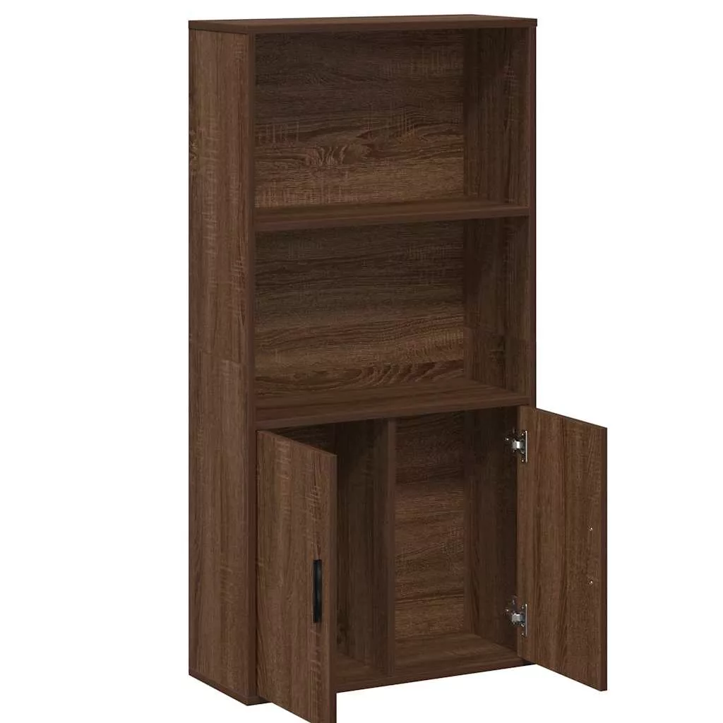 Ez a könyvespolc tökéletes megoldást kínál könyvei rendszerezésére, miközben stílusos és funkcionális kiegészítője otthonának. Stabil és tartós anyag: A szerelt fa tartós és stabil anyag sima felülettel, amely ellenáll a nedvességnek, a vetemedésnek és a hasadásnak, így megbízható választás különféle célokhoz.Bőséges tárolóhely: Ez a tárolószekrény két polccal és két ajtós rekesszel rendelkezik, így bőséges helyet biztosít a könyvek, magazinok és dokumentumok gyűjteményének rendben tartásához.Praktikus ajtó: A tárolószekrény ajtaja zárt tárolóhelyet biztosít, hogy a holmijait rendezetten, védve és szem elől elrejtve tarthassa.Sokoldalú felhasználás: A könyvszekrény ideális lesz könyvgyűjteményének. Használható akár bemutatópolcként is, melyre különböző dísztárgyakat, például fényképeket, díjakat, cserepes növényeket tehet.Könnyen karbantartható: Sima felületének köszönhetően a szekrény nedves ruhával könnyen tisztítható, és kevesebb gondozást igényel. Figyelem:A felborulás elkerülése érdekében ezt a terméket a mellékelt fali rögzítőeszközzel kell használni.