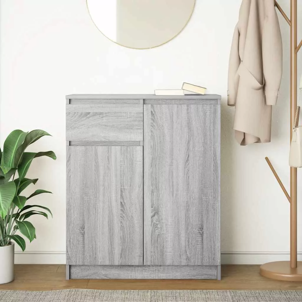 szürke sonoma szerelt fa tálalószekrény fiókos 71x35x84 cm
