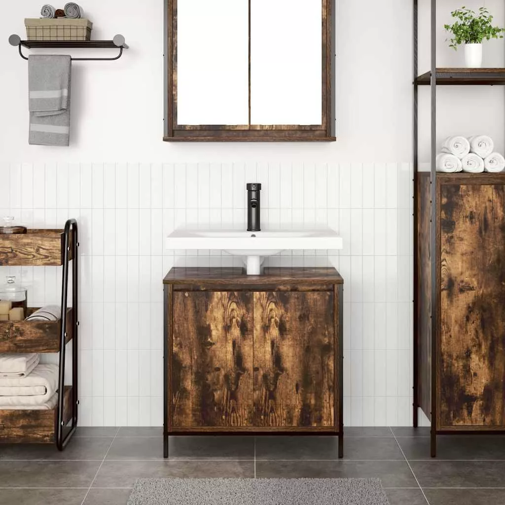 füstölt tölgy mosdószekrény fiókokkal 60x34,5x60 cm