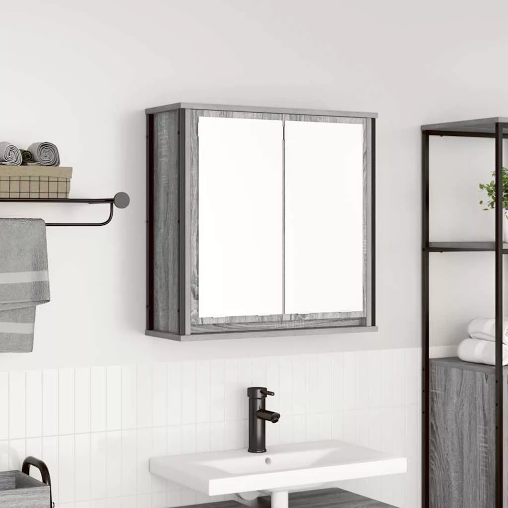 szürke sonoma fürdőszoba fali szekrény tükörrel 60x21x60 cm