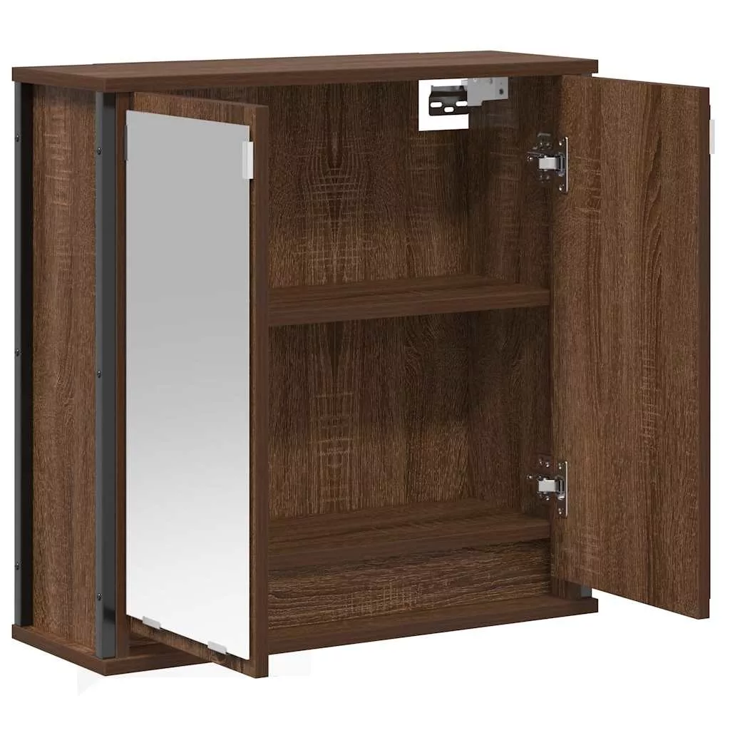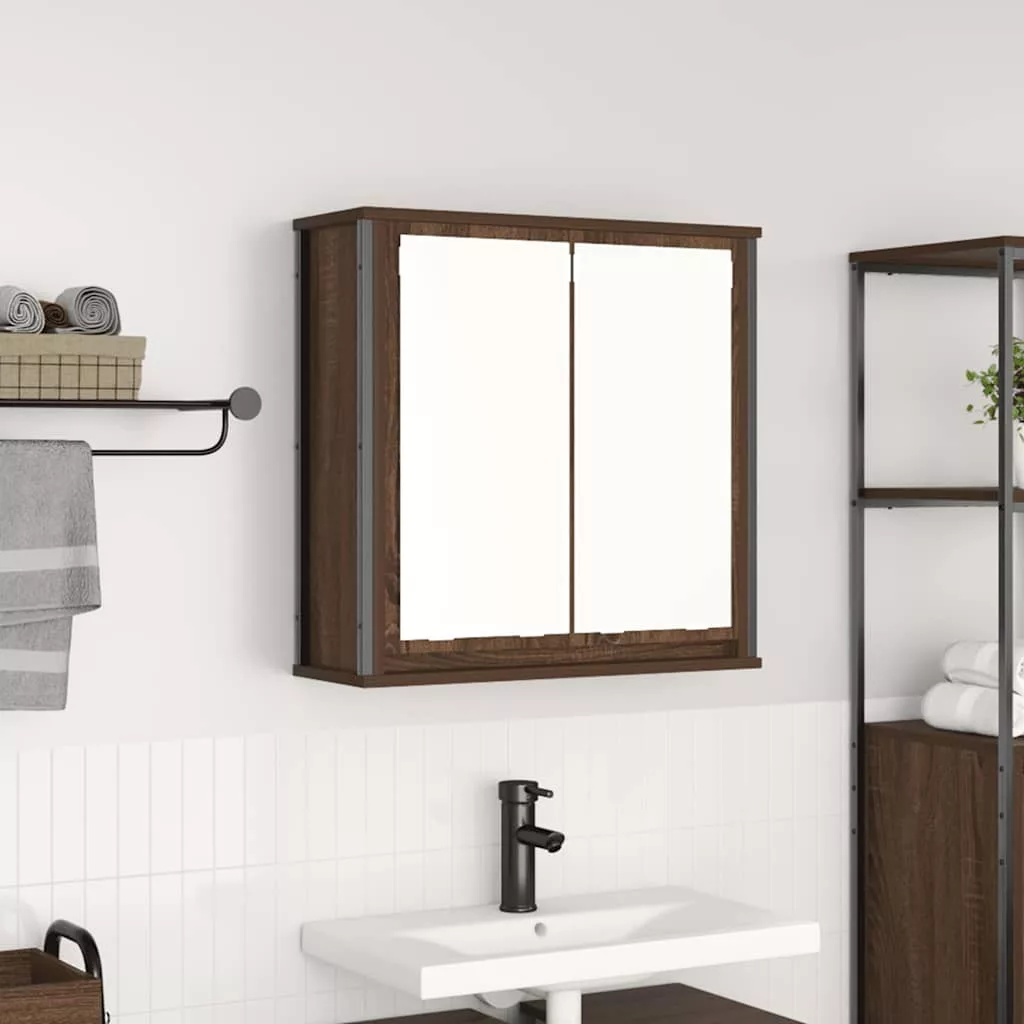 barna tölgy fürdőszoba fali szekrény tükörrel 60x21x60 cm