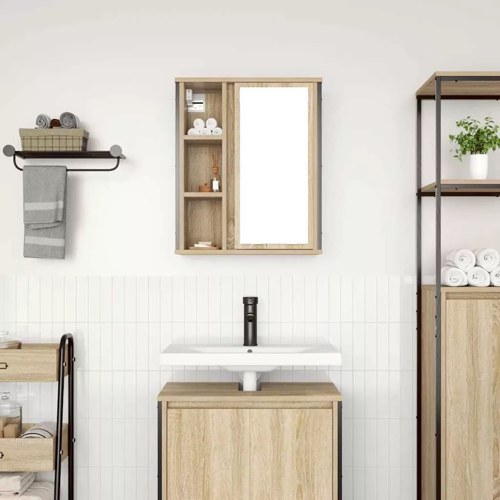 tölgy színű fürdőszoba fali szekrény tükörrel 50x21x60 cm