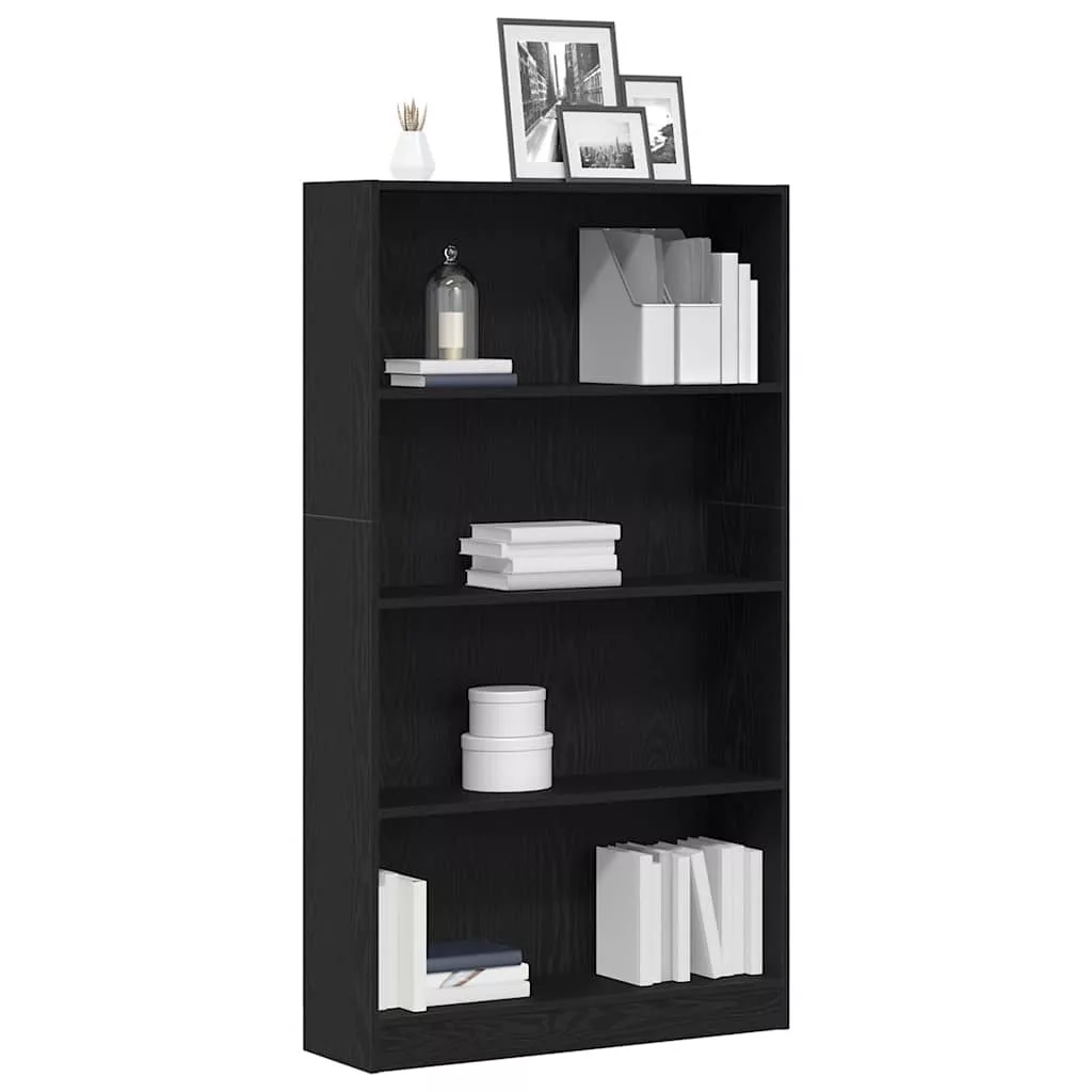 4 szintes fekete tölgy szerelt fa könyvespolc 80x24x143 cm