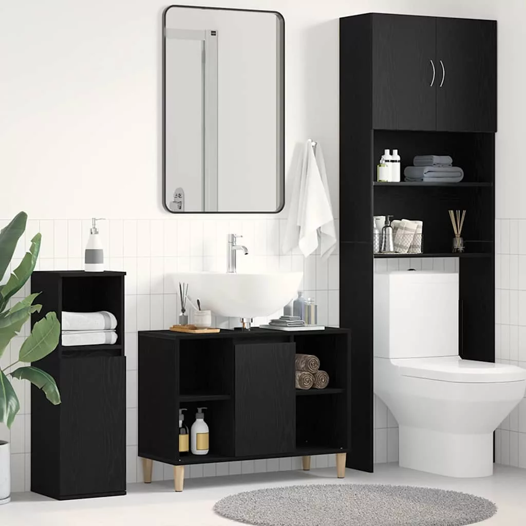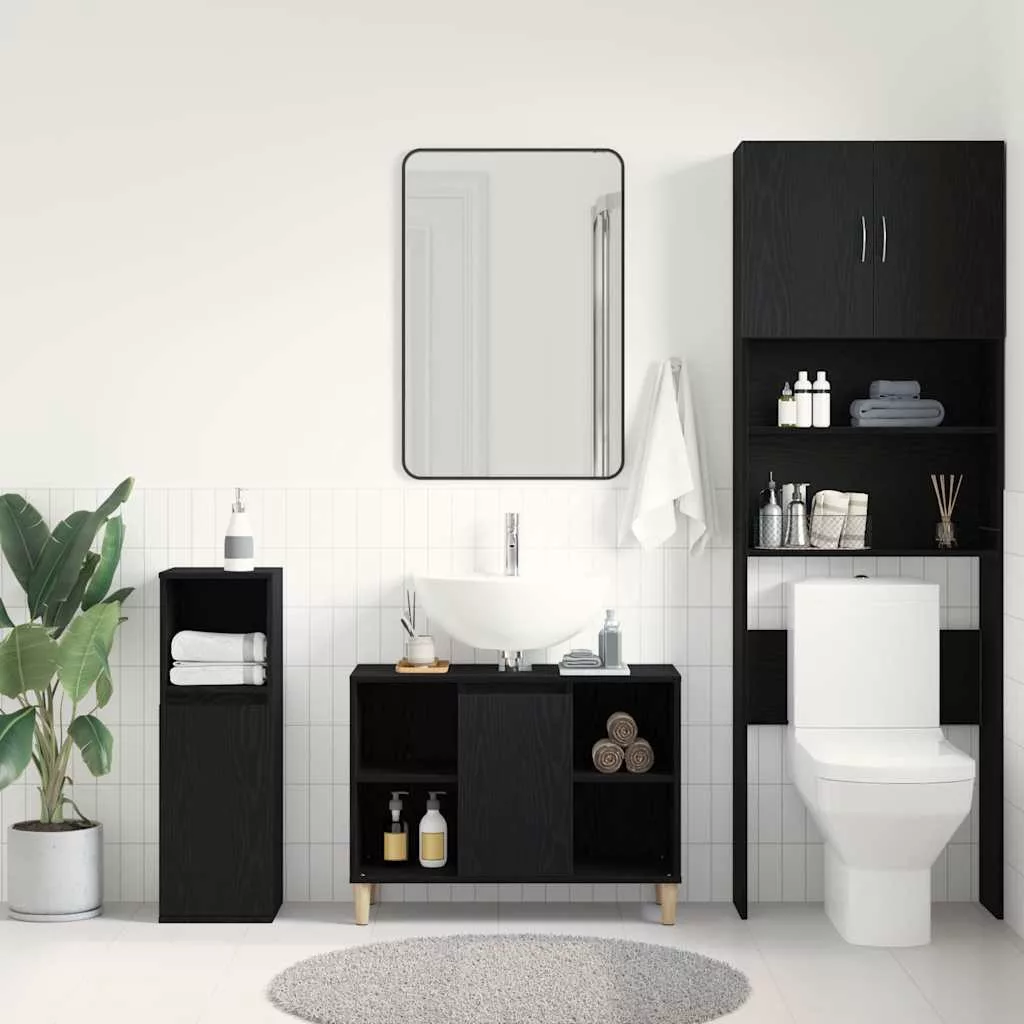 fekete tölgyfa mosdószekrény 80 x 33 x 60 cm